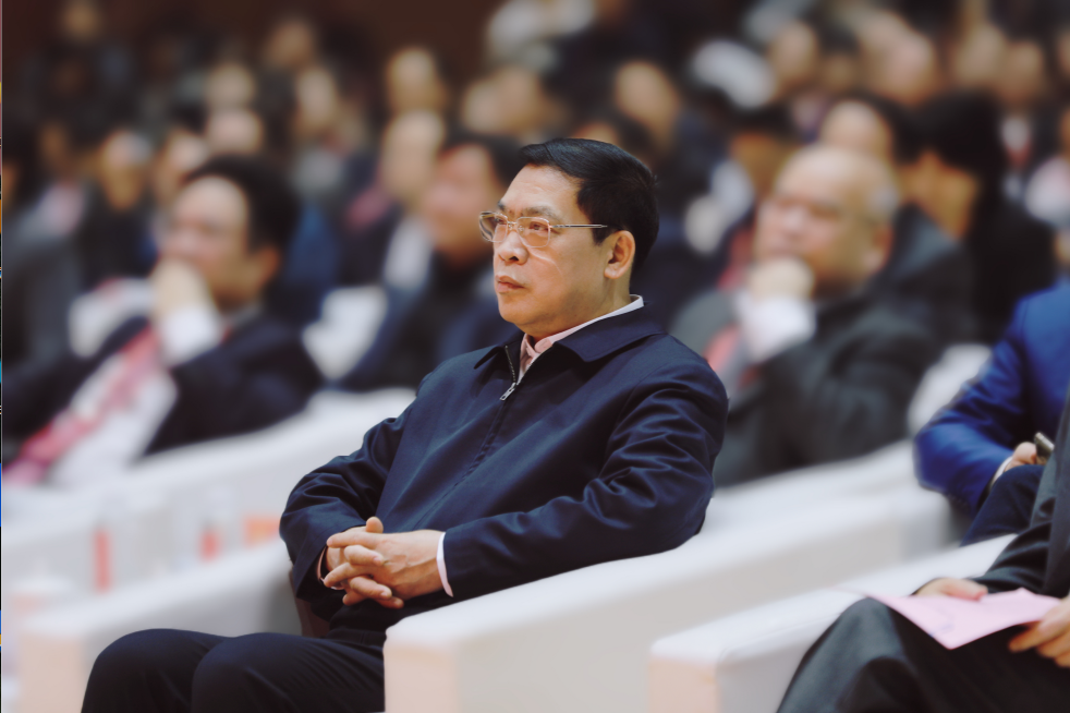 ▲自治区党委原政法委书记、自治区政协原副主席、华体会平台校友温卡华出席大会