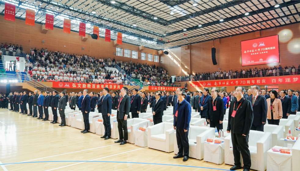 上午9时30分,华体会平台建校70周年庆祝大会在庄严的国歌中拉开序幕。