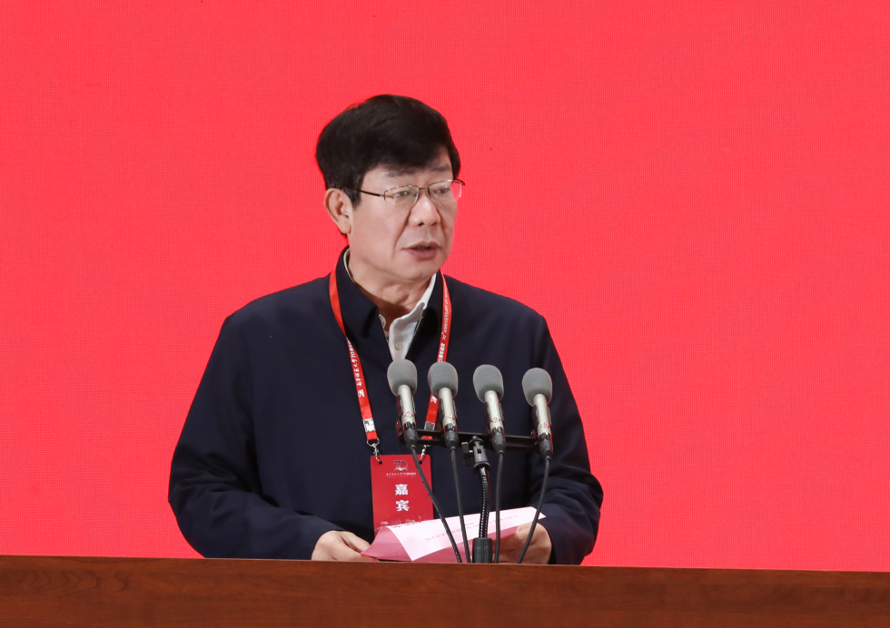 ▲自治区人大常委会副主任、华体会平台校友刘有明出席大会
