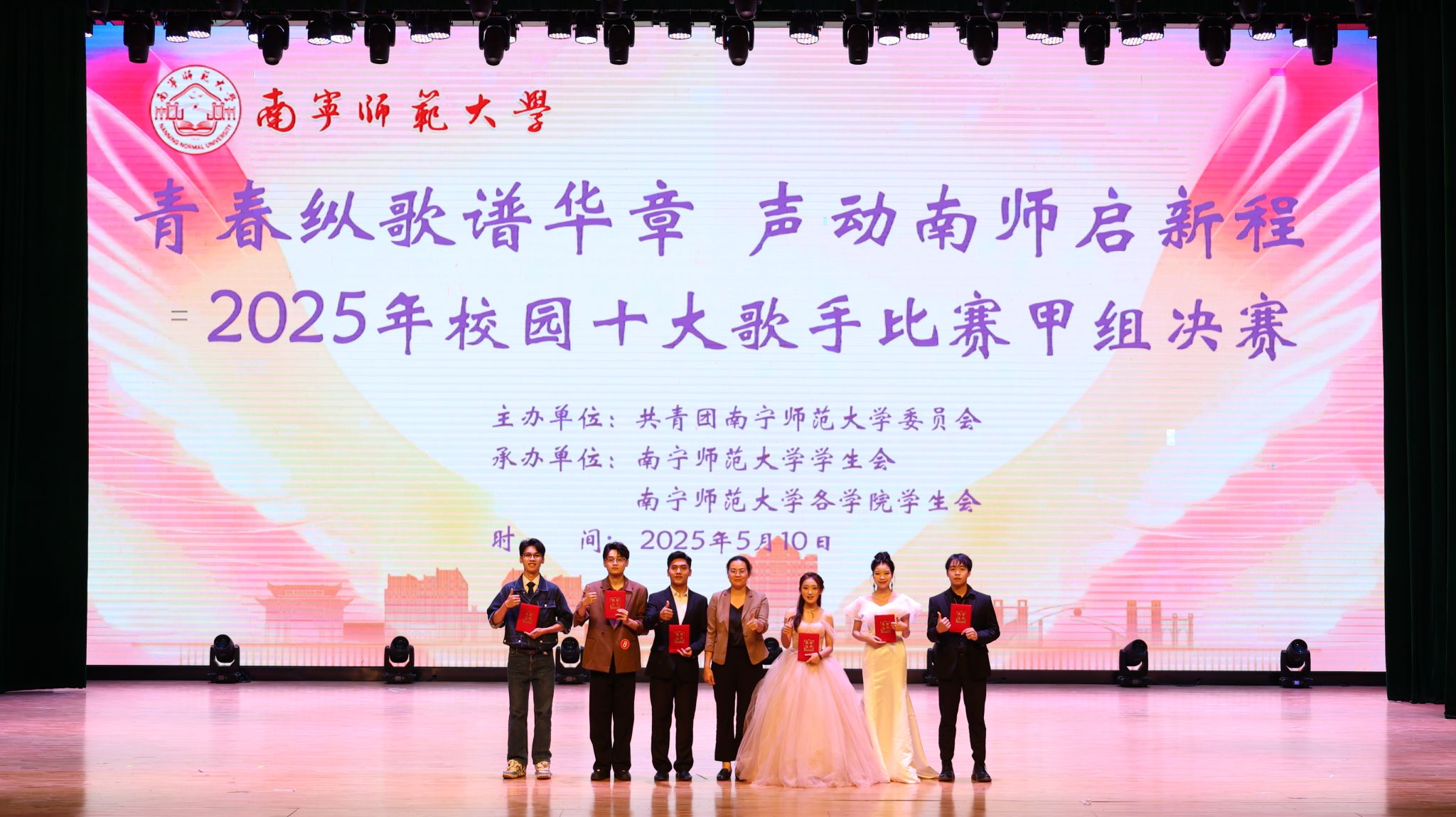 5月10日,华体会平台(中国)举办“青春纵歌谱华章,声动南师启新程”校园十大歌手决赛。党办校办、党委组织部、党委宣传部、党委学生工作部、校团委等部门负责人,兄弟院校嘉宾以及全校师生代表1300余人共同见证了这场青春盛会。