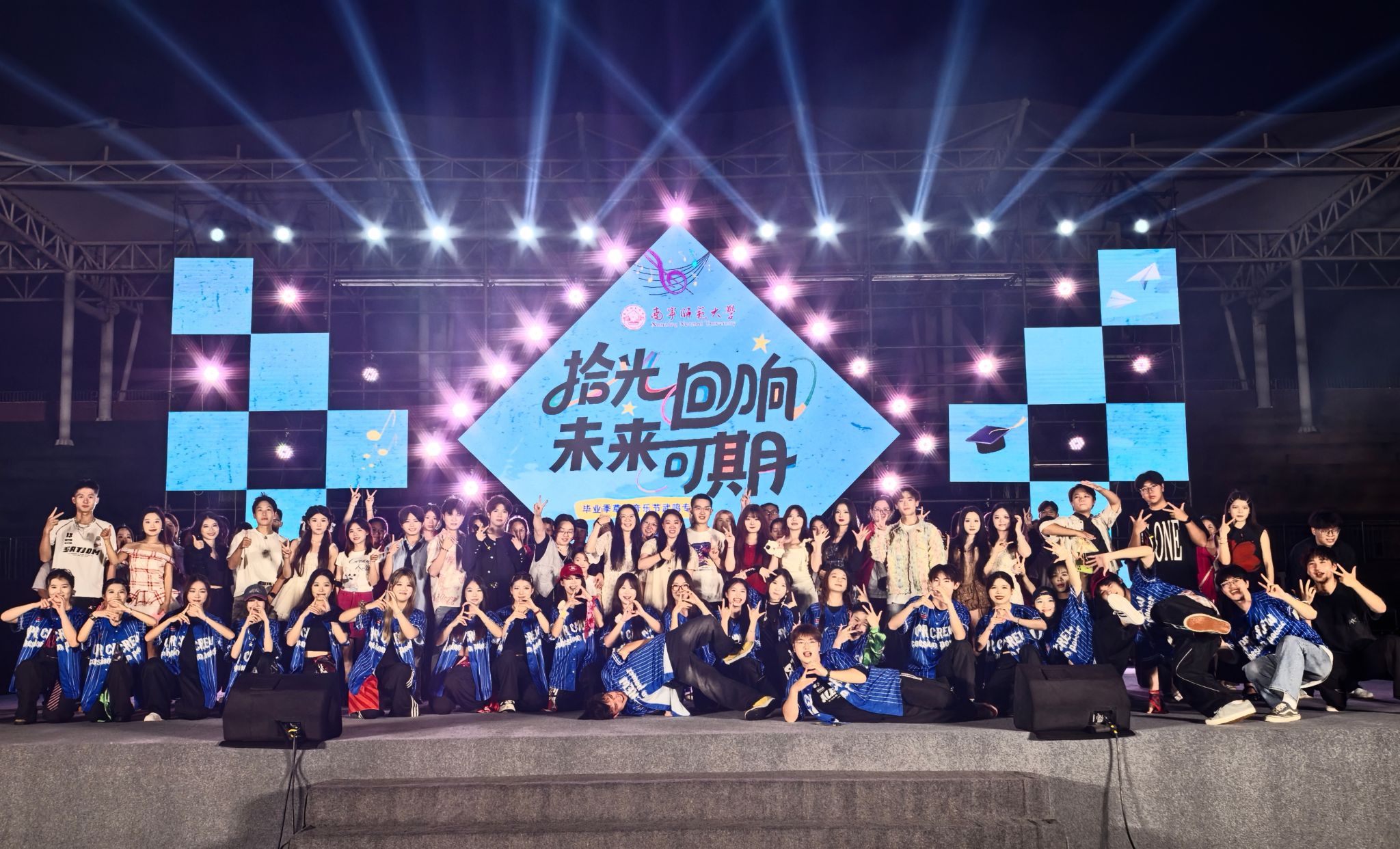 武鸣校区“未来可期”专场分为“启·时光隧道”“忆·声动年华”“盼·星河远航”三大篇章,节目精彩纷呈。街舞表演《爱出发》点燃全场热情,原创歌曲《你好,南师大》勾起初入校园的美好回忆,在《一起向未来》的旋律中,演员与观众共同挥舞旗帜,激昂的歌声响彻夜空。音乐与舞蹈学院毕业生黄玮衡用两首原创音乐致敬母校,寄语学弟学妹突破桎梏拥抱美好未来。活动尾声,上百只气球承载着毕业生对未来的美好期许冉冉升空,最后以一首《再见》缓缓结束了这场关于毕业的狂欢。