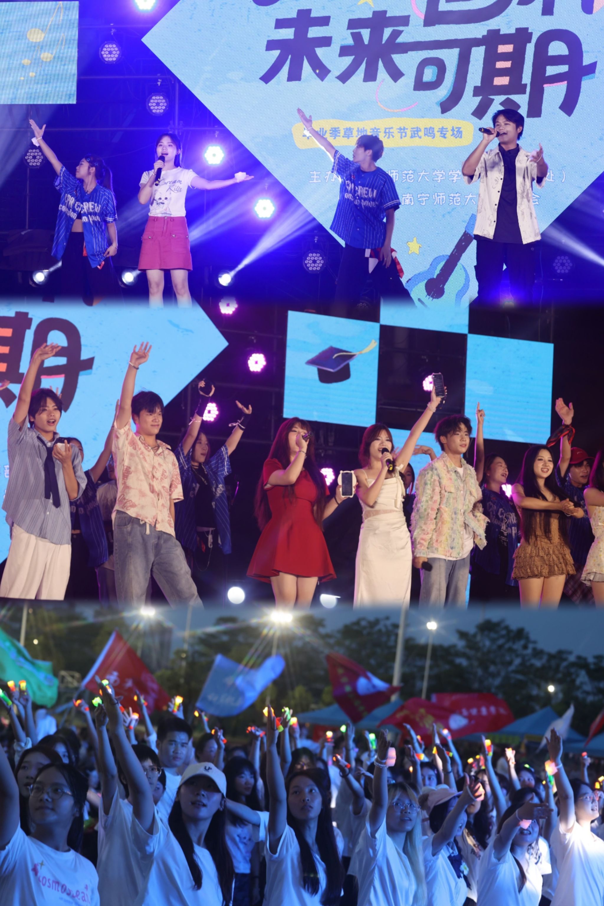 为进一步营造2025年毕业季氛围,传递母校祝福,搭建毕业生情感交流和风采展示的平台,6月15日和6月21日,华体会平台分别在五合、武鸣校区开展2025年“拾光回响”毕业季草地音乐节系列活动。活动现场化身青春海洋,吸引了近5000名师生齐聚,共同奏响毕业季的动人乐章。