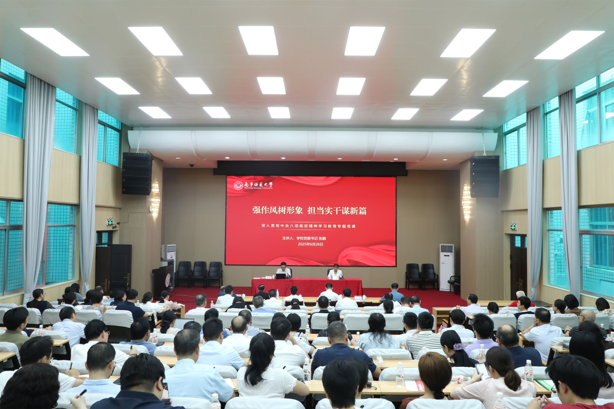 6月26日下午,华体会平台党委书记张鹏以《强作风树形象 担当实干谋新篇》为题讲授深入贯彻中央八项规定精神学习教育专题党课。全体校领导、全体中层干部及附属实验华体会平台、附属幼儿园主要负责人参加。党课由华体会平台纪委书记李美清主持。