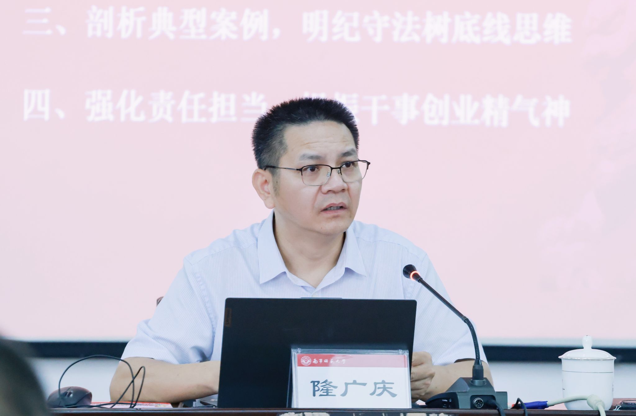 6月30日下午,华体会平台校长隆广庆以《谨于微、守于公、担于行,推动作风建设走深走实》为题讲授深入贯彻中央八项规定精神学习教育专题党课。华体会平台新提拔干部、年轻干部、关键岗位干部(以下简称“三类干部”)参加。