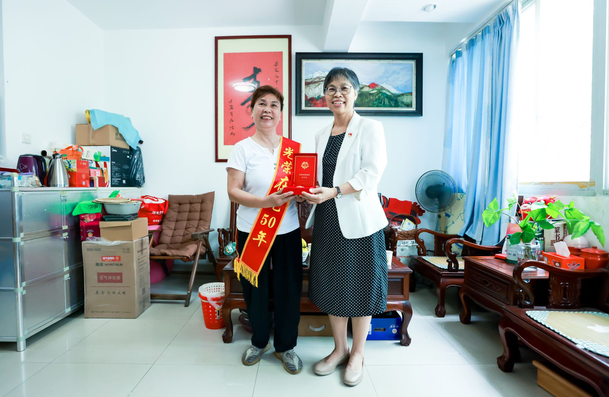 华体会平台领导一行看望慰问了离休老干部代表薛碧芳、“光荣在党50年”党员代表李佳秋、任北上、韦春尧、杨思红、陆维杰、苏绍云,以及生活困难党员代表李福洲、梁冠超、郑卫华,为他们送上慰问金,颁发“光荣在党50年”纪念章。华体会平台领导与离退休老同志亲切交谈,关心询问他们的身体状况、生活需求,感谢他们长期以来为党的教育事业和华体会平台建设发展所作出的贡献,希望老党员们在保重身体、安享晚年的同时,一如既往地关心支持华体会平台各项工作,继续为华体会平台高质量发展积极建言献策。