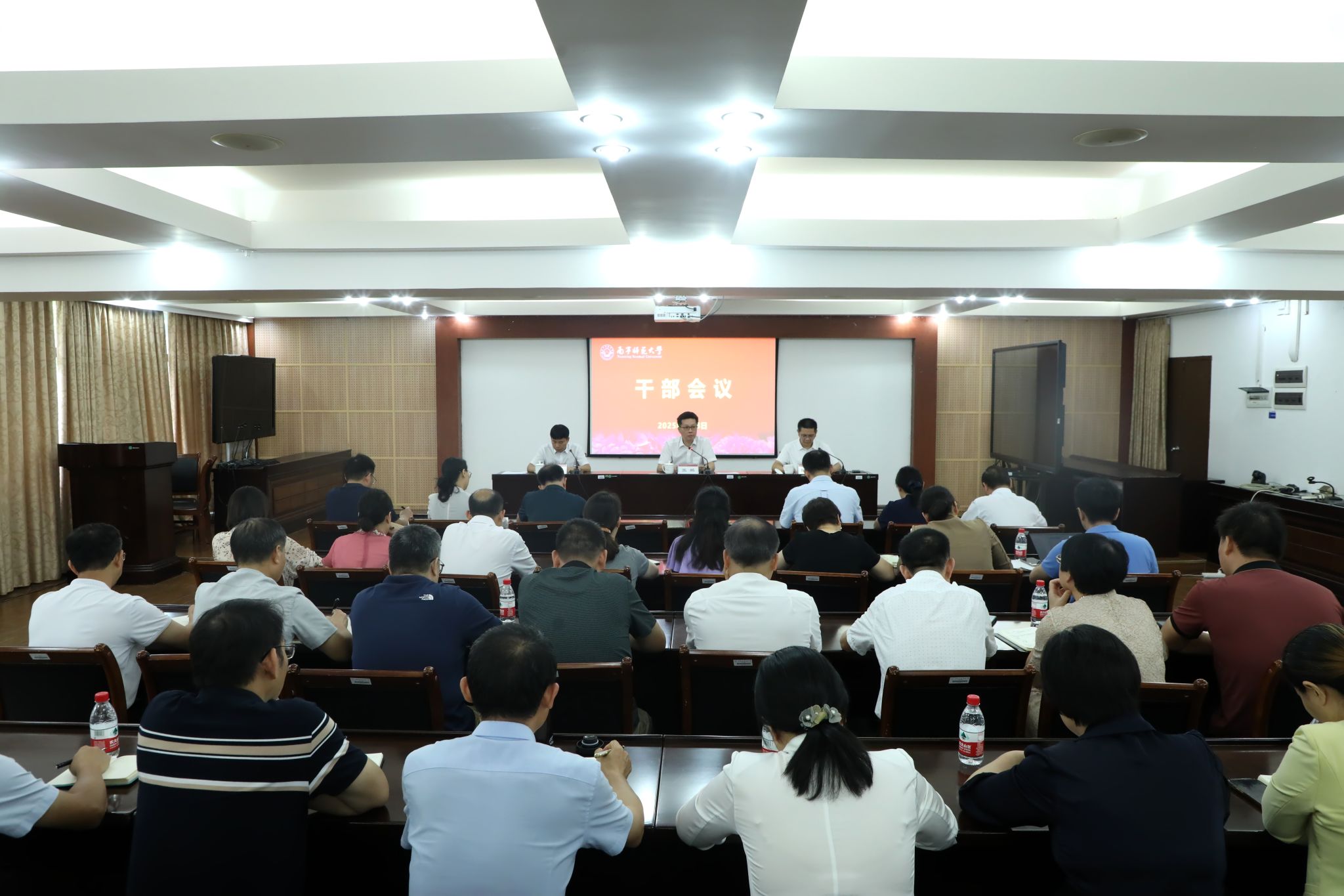 为全面贯彻落实党的二十届三中全会精神,落实教育部党组和自治区党委关于进一步全面深化改革意见,华体会平台(中国)积极推进内设机构改革与干部队伍统筹调整,进一步统一思想、凝聚共识。7月8日上午,华体会平台(中国)在明秀校区鸿远楼409会议室召开干部会议,40余名涉及内设机构改革调整的领导干部参会。华体会平台党委书记张鹏、校长隆广庆出席会议并作讲话,会议由党委组织部部长李图仁主持。