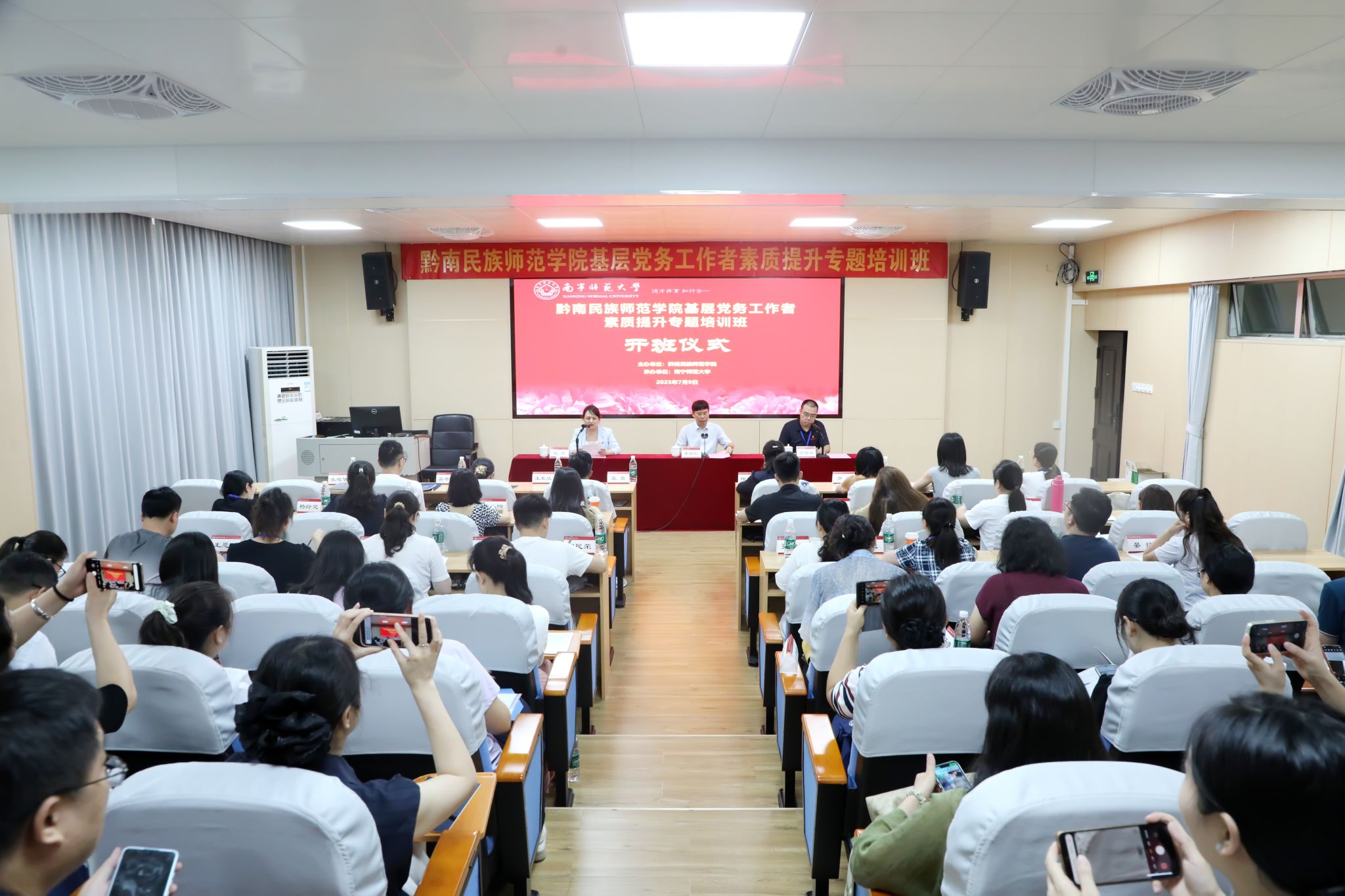 7月9日,“黔南民族师范学院基层党务工作者素质提升专题培训班”在华体会平台(中国)明秀校区顺利开班。华体会平台副校长王国红为学员们讲授第一堂课,50名学员参加培训。