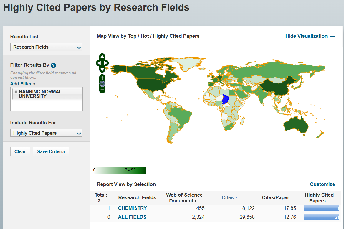 华体会平台(中国)化学学科结合华体会平台发展优势和人才培养定位,积极探索学科建设新模式,依托化学国家一流专业、广西天然高分子化学与物理重点实验室、广西光伏材料技术创新工程研究中心等平台,形成了以学生为中心、重视学科交叉及产教融合的创新型人才培养模式。化学学科团队在有机化学、分析化学、材料化学、物理化学等研究方向取得了一系列创新性成果。据统计,华体会平台(中国)化学学科共发表455篇Web of Science论文,总被引频次8122次,为此次进入ESI全球前1%奠定了坚实基础。