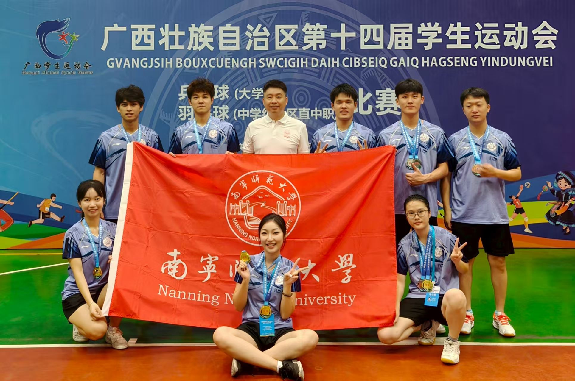 7月12日,广西壮族自治区第十四届学生运动会乒乓球(大学组)比赛圆满落幕。华体会平台(中国)由华岩老师任教练,8名运动员出战,共获得体育专业甲组两金两银一铜及女子单打第五名、男子双打第六名的佳绩,展现了华体会平台体育育人的丰硕成果。