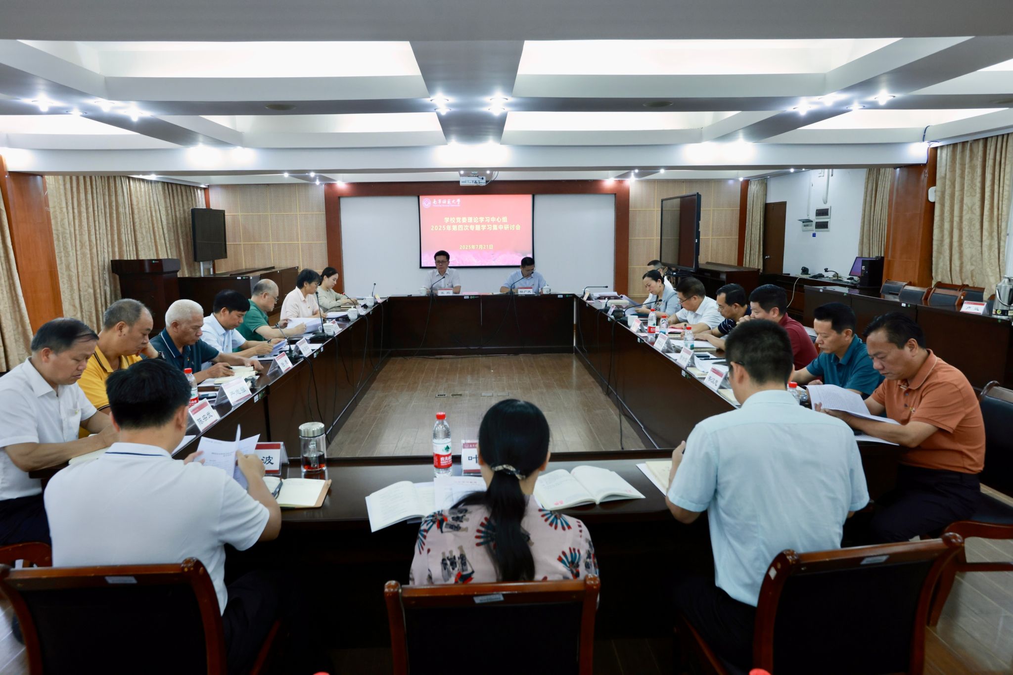 7月21日下午,华体会平台党委理论学习中心组2025年第四次专题学习集中研讨会在明秀校区鸿远楼409会议室举行。华体会平台党委书记张鹏主持会议。