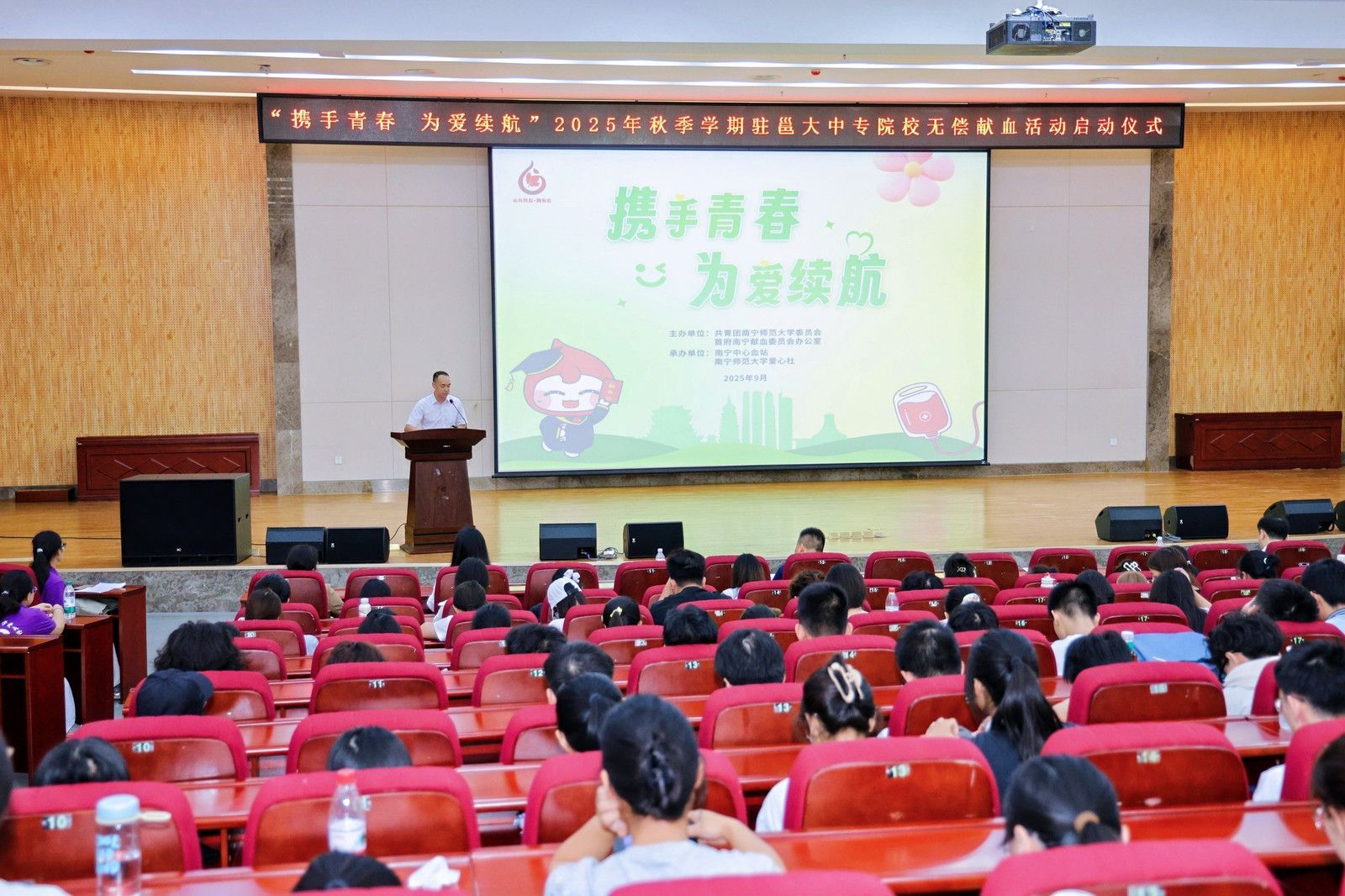 9月14日,“携手青春 为爱续航”2025年秋季学期驻邕高校无偿献血活动启动仪式在华体会平台(中国)武鸣校区举办,南宁中心血站负责人,华体会平台国内合作处、校团委负责人以及师生代表400余人参加了本次启动仪式。