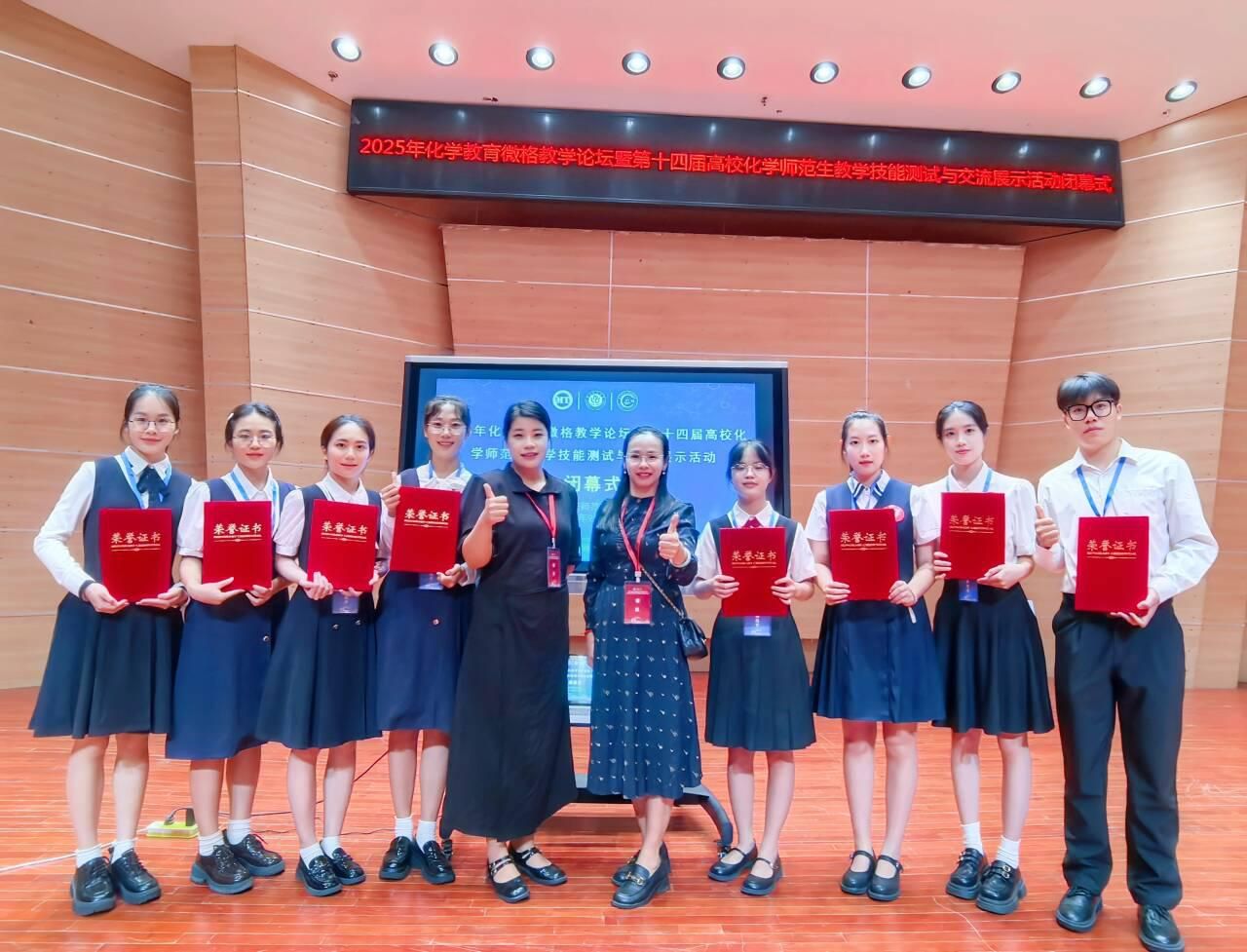 9月19日至22日,化学教育微格教学论坛暨第十四届全国高校化学师范生教学技能交流展示活动在重庆师范大学落下帷幕。华体会平台(中国)化学与材料学院选派8名学子参赛,凭借深厚的专业积累与出色的教学实践能力,在全国高校同台竞技中表现优异,共获一等奖4项、二等奖1项、三等奖3项。