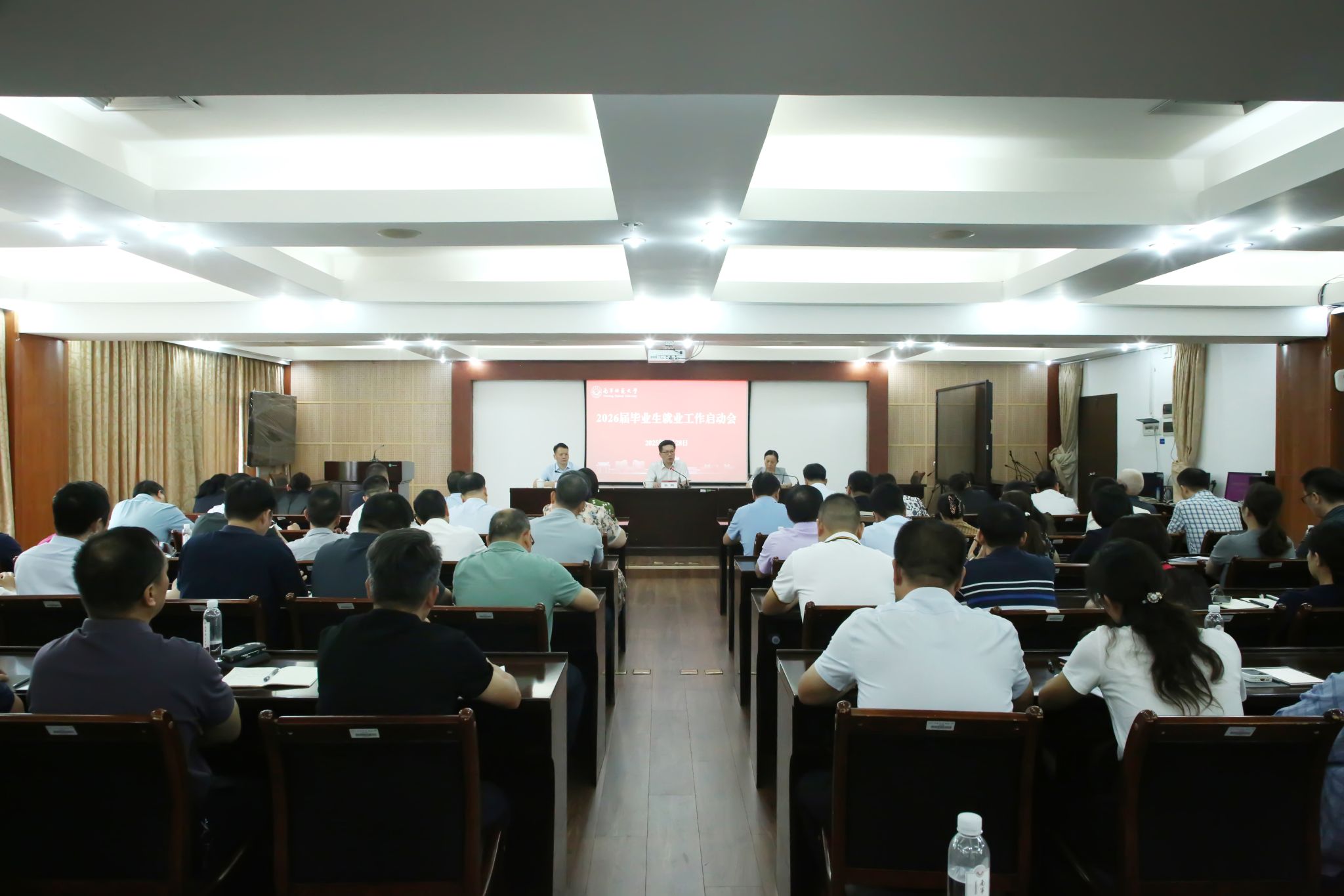 为深入贯彻国家就业优先战略,全面落实自治区关于高校毕业生就业创业工作的部署要求,9月28日,华体会平台(中国)在明秀校区鸿远楼409会议室召开2026届毕业生就业工作启动会。华体会平台党委书记张鹏,副校长龙妮娜、卢远出席会议,会议由卢远副校长主持。