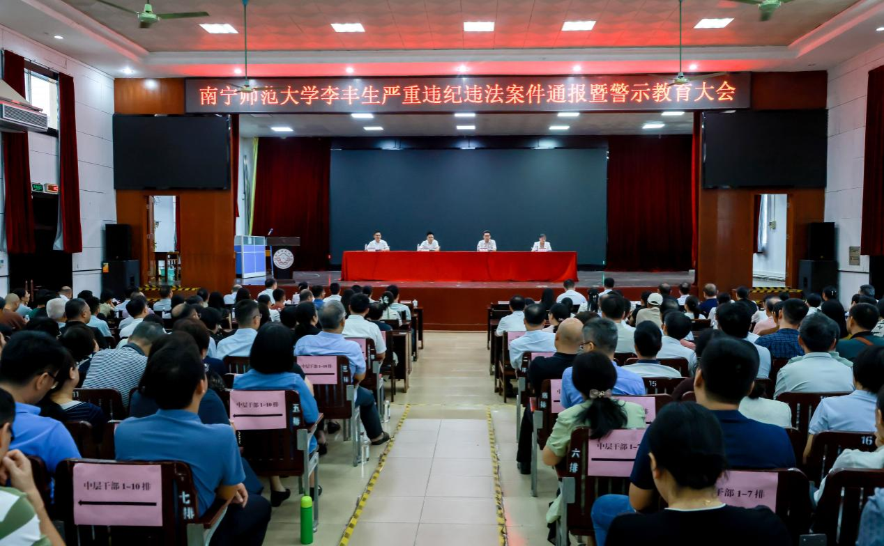 9月29日,华体会平台(中国)在明秀校区会堂召开李丰生严重违纪违法案件通报暨警示教育大会。广西壮族自治区监察委员会委员李杰新到校指导并讲话,华体会平台党委书记张鹏作廉政谈话。大会由华体会平台校长隆广庆主持。