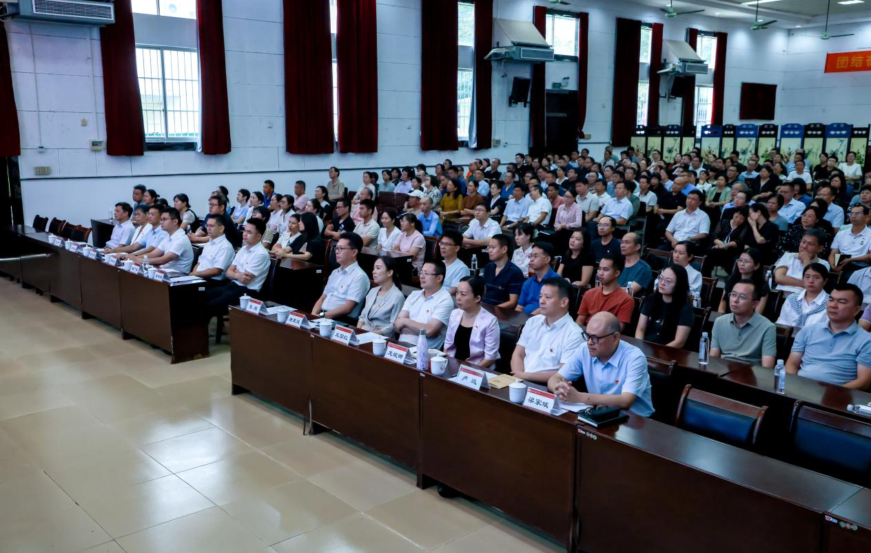 广西壮族自治区纪委监委第九监督检查室主任高军鸿,全体在家校领导、已退休的相关校领导、全体中层干部、关键领域部门全体员工、原相关重要岗位的中层干部、机关党委党员代表以及各二级学院教工党支部书记等360余人参加会议。