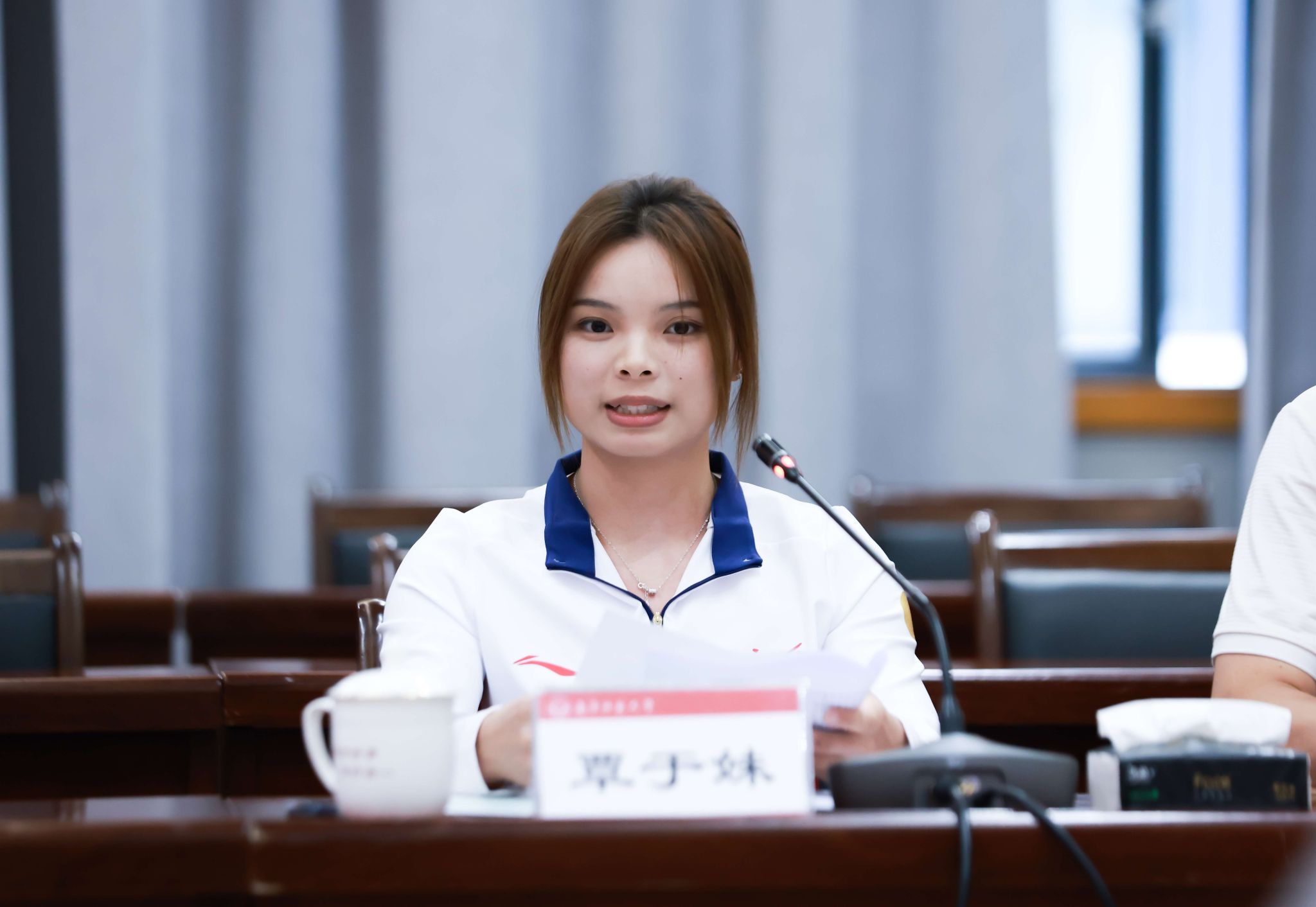 新入学的2025级运动训练专业学生、广西优秀攀岩运动员覃于妹分享了她的感受及未来的学业规划,她感谢自治区体育局的培养与输送,也感谢华体会平台提供的宝贵学习机会,表示将珍惜校园时光,努力实现运动成绩与学术修养的双重提升,继续为广西和国家争光。