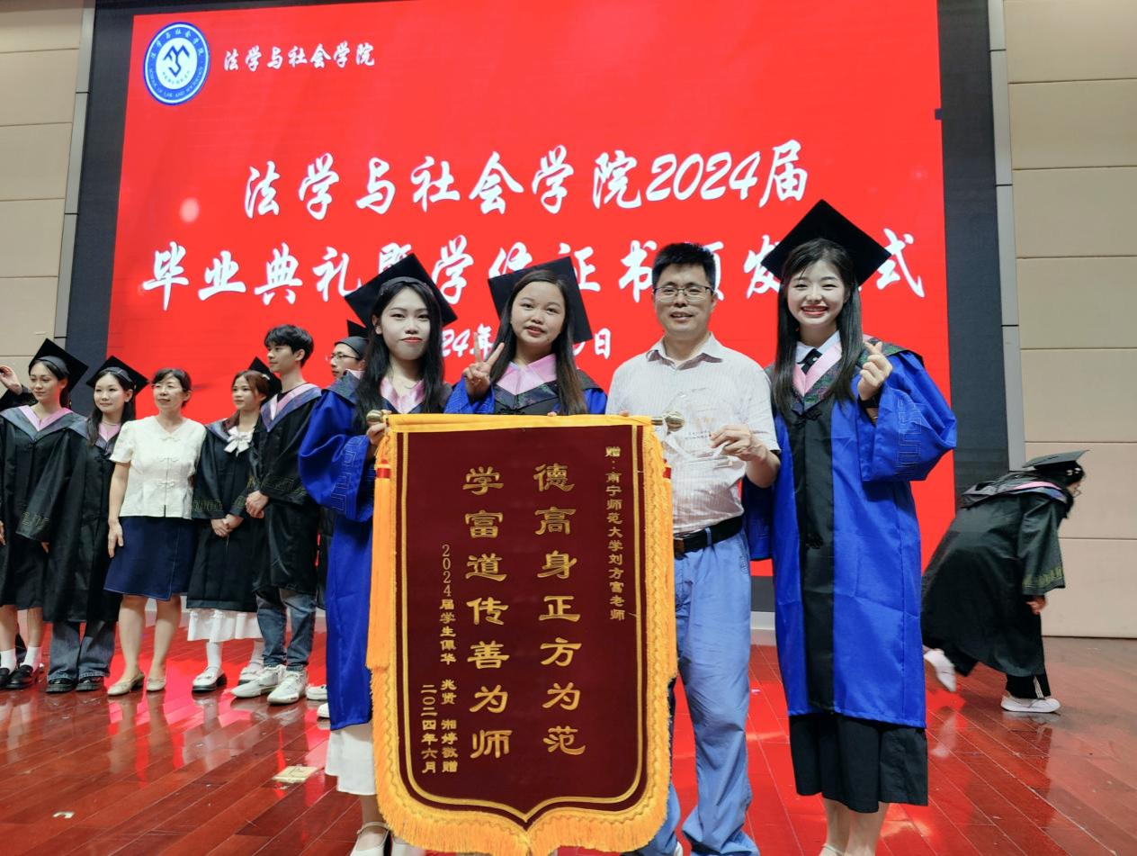 法学与社会学院2024届毕业典礼暨学位证书颁发仪式上刘方富(右二)与学生合影