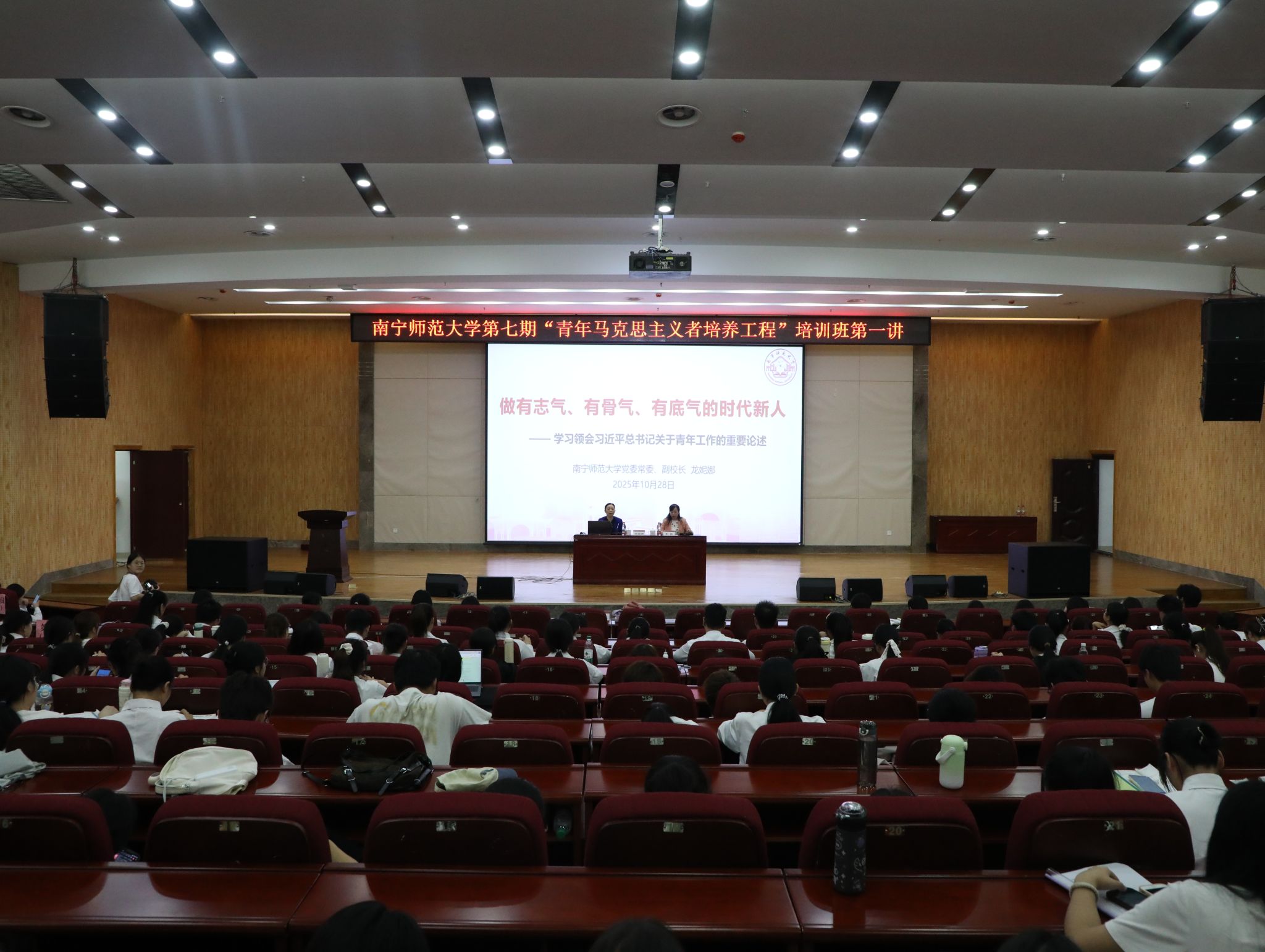 10月28日下午,华体会平台副校长龙妮娜在武鸣校区图书馆报告厅为团员青年作题为《做有志气、有骨气、有底气的时代新人——学习领会习近平总书记关于青年工作的重要论述》的专题报告。第七期“青年马克思主义者培养工程”全体学员、武鸣校区各学院学生骨干代表共计300余人参加了本次报告会。