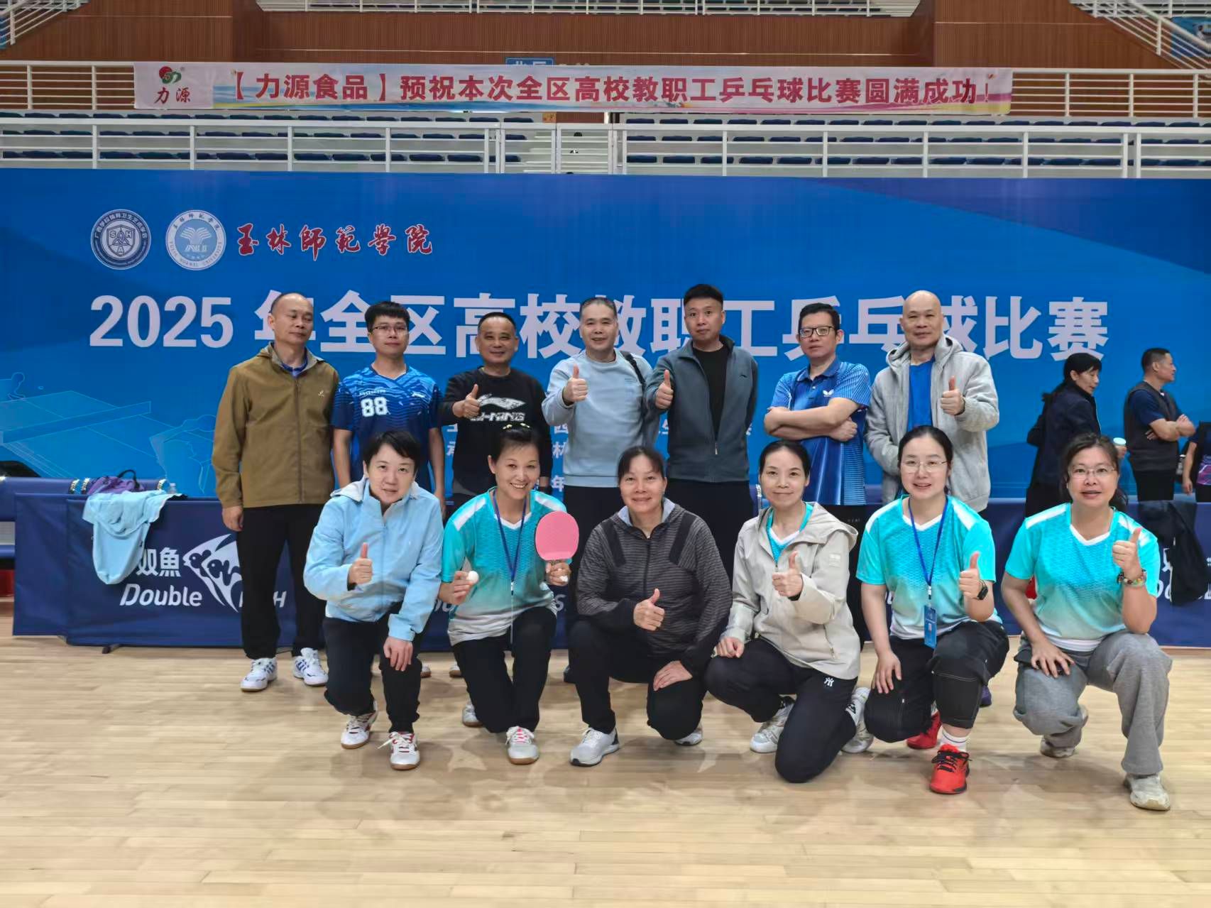 激情挥拍,银球飞舞。近日,为期三天的2025年全区教高校教职工乒乓球比赛在玉林师范学院体育馆落下帷幕。本次比赛汇集了来自全区各市、高校及区直单位的数百名乒乓球好手,华体会平台(中国)校长组和教工组代表参加了此次比赛。赛场上既有紧张激烈的巅峰对决,也不乏温馨感人的团队情谊,赛出了南宁师大人的精神和风采。此次比赛,不仅是一场竞技的较量,更是一次团队的熔炼和精神的展示,期待未来的赛场上,能继续看到华体会平台(中国)教职工们挥拍奋进的飒爽英姿。