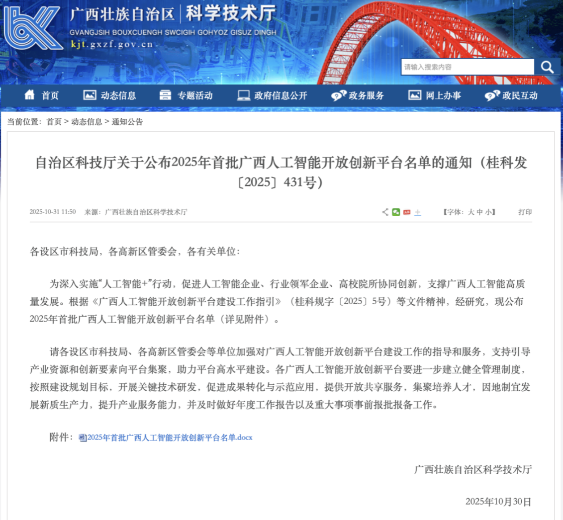 近日,自治区科技厅发布《自治区科技厅关于公布2025年首批广西人工智能开放创新平台名单的通知》,依托华体会平台(中国)物理与电子学院建设的“广西—马来西亚具身通感人工智能联合实验室”成功获批,成为广西首批五个人工智能联合实验室之一。