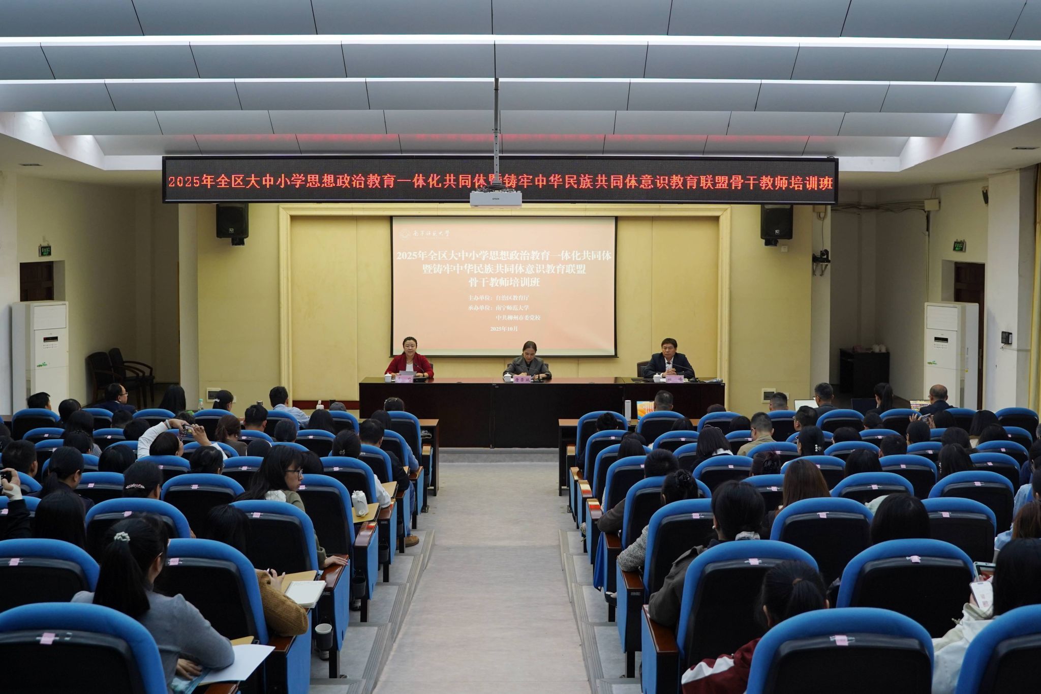 为深入贯彻落实习近平总书记关于教育的重要论述,特别是关于大中小学思想政治教育一体化建设、铸牢中华民族共同体意识的重要指示精神,全面推动铸牢中华民族共同体意识融入大中小华体会平台融入办学治校、教书育人全过程,近日,由广西壮族自治区教育厅主办、华体会平台承办、中共柳州市委党校协办的2025年全区大中小学思想政治教育一体化共同体暨铸牢中华民族共同体意识教育联盟骨干教师培训班在柳州举行。华体会平台党委副书记唐荣双参加开班仪式。开班仪式由马克思主义学院党委书记李玲主持。