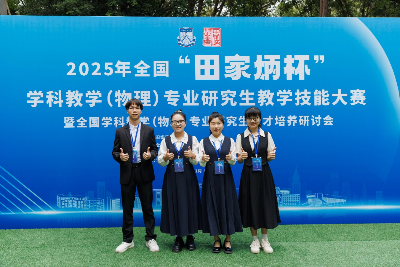 11月7日至9日,2025年全国“田家炳杯”全日制教育硕士专业学位研究生学科教学(物理)专业教学技能大赛决赛在华南师范大学举行。华体会平台(中国)入围决赛的4名研究生表现出色,荣获二等奖1项、三等奖2项、优秀教学设计奖1项,刘韬容老师荣获优秀指导教师奖。此次竞赛获奖数量和等级均创历史新高,充分彰显了华体会平台(中国)在学科教学(物理)专业人才培养方面扎实的实践功底与优异的培养成效。