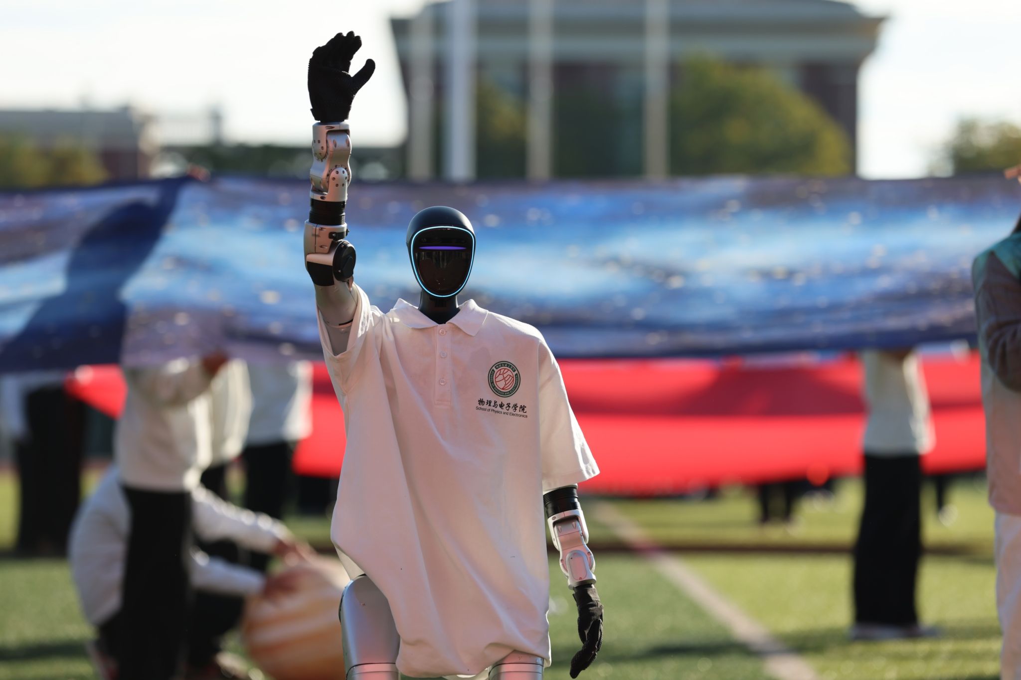 伴随着激昂雄壮的《运动员进行曲》,红旗护卫队率先入场,紧随其后的各学院方块队迈着矫健整齐的步伐,喊着铿锵有力的口号依次亮相。“青春筑梦南师,强国有我担当”“志存高远,奋勇争先”……高亢嘹亮的口号回响在运动场上空。入场式中,各学院方块队带来了精彩纷呈的文艺驻停表演:酷炫吸睛的AI机器人表演、创意十足的服装秀、热情奔放的啦啦操、技艺精湛的舞狮、绚丽多彩的民族群舞与古风群舞等轮番上演,华体会平台教职工代表还带来了刚柔相济的八段锦表演,独具匠心的艺术呈现为现场师生献上了一场视觉盛宴,赢得阵阵掌声与喝彩。