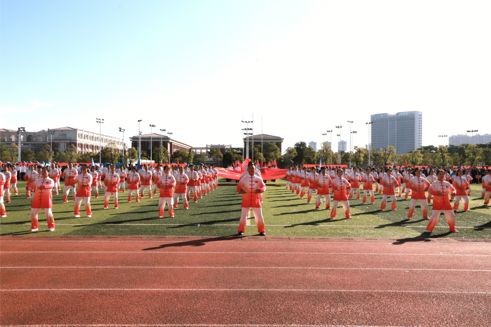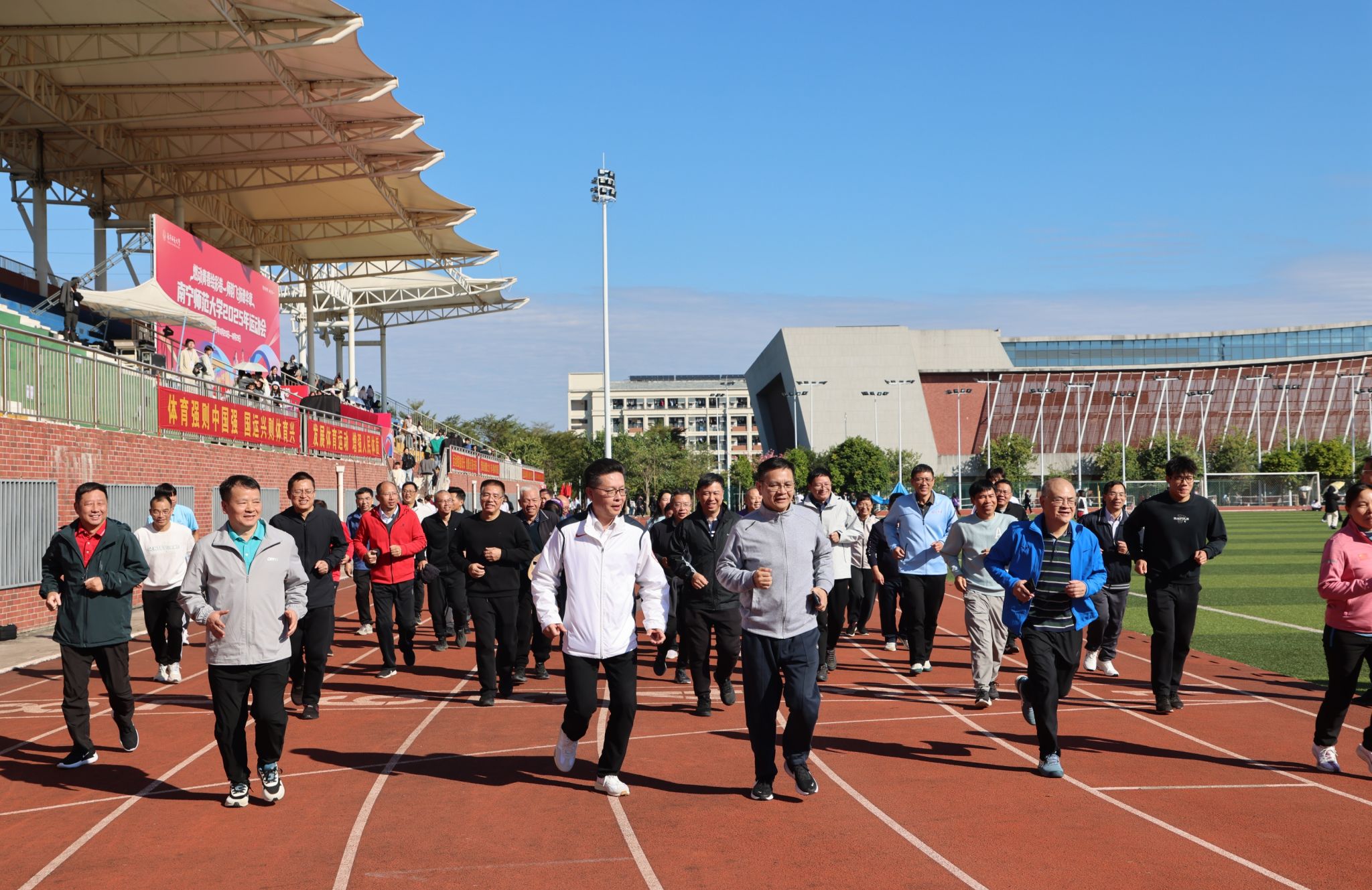 开幕式结束后,校领导带领处级干部在田径场上开展华体会平台2025年校园健身跑启动仪式,并绕田径场进行400米健身跑。