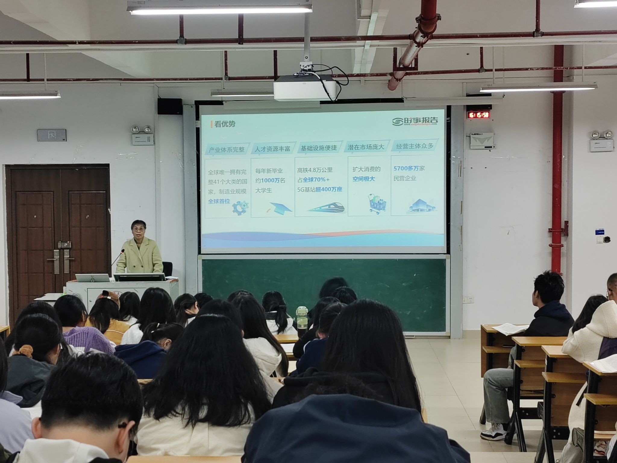 李美清以《决胜“十四五”,奋发向前行》为题,立足国家发展全局,结合详实案例,梳理了“十四五” 时期我国在科技创新、法治完善等多领域的历史性成就,总结了坚持党的全面领导、以人民为中心等宝贵发展经验,分析了当前国际国内形势,她强调发展新质生产力是中国式现代化的必然要求,呼吁青年接续奋斗,助力全面建设社会主义现代化国家。