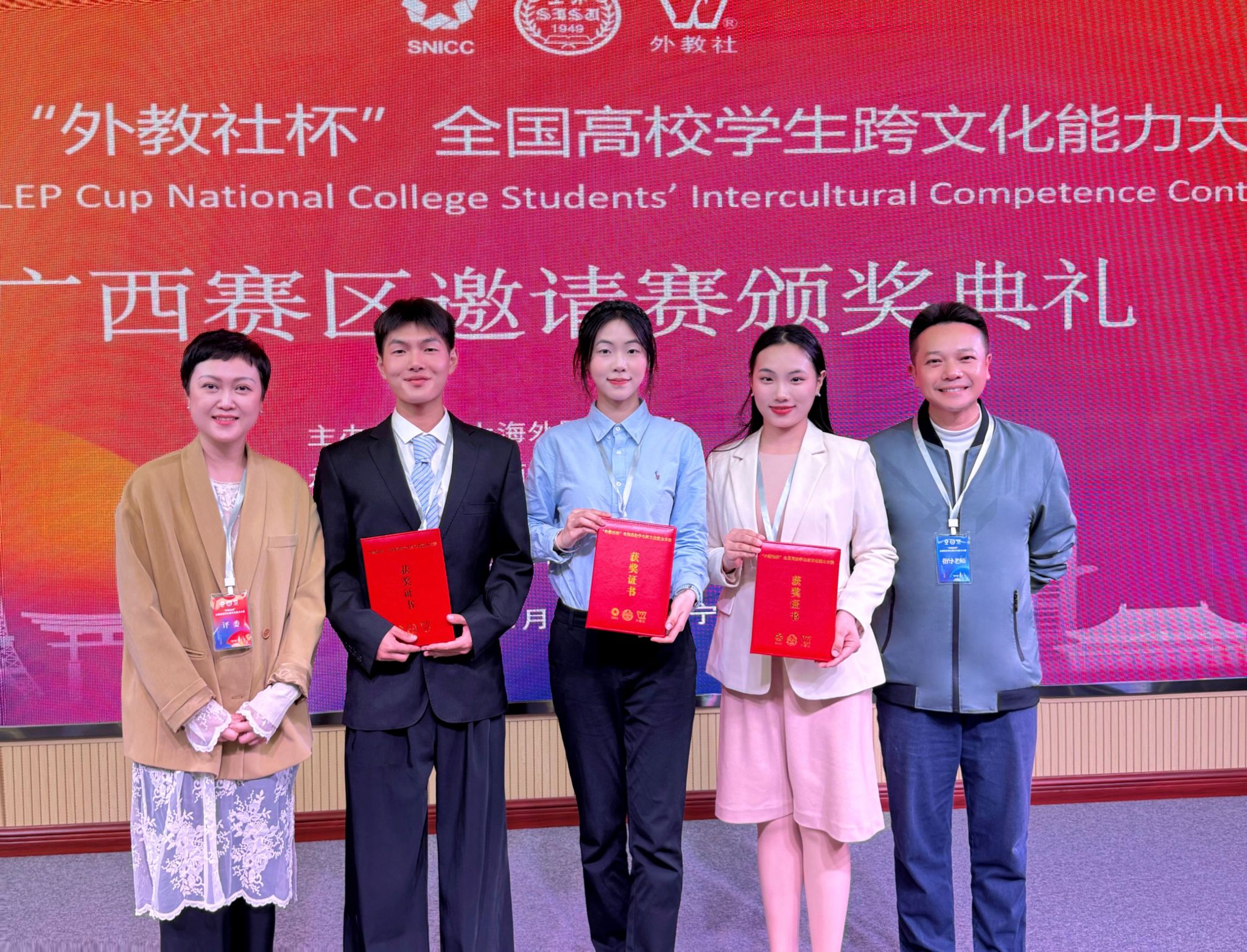 华体会平台及外国语学院领导高度重视此次比赛,参赛团队由外国语学院覃耀龙老师担任指导教师,在备赛与比赛全程中展现出扎实的跨文化理论素养、娴熟的外语表达能力与沉稳自信的精神风貌,集中体现了华体会平台跨文化人才培养与教育创新的成果。未来,华体会平台将以此次荣誉为契机进一步深化跨文化教育、拓宽实践与国际交流平台,为更多学子走向世界提供更广阔舞台。