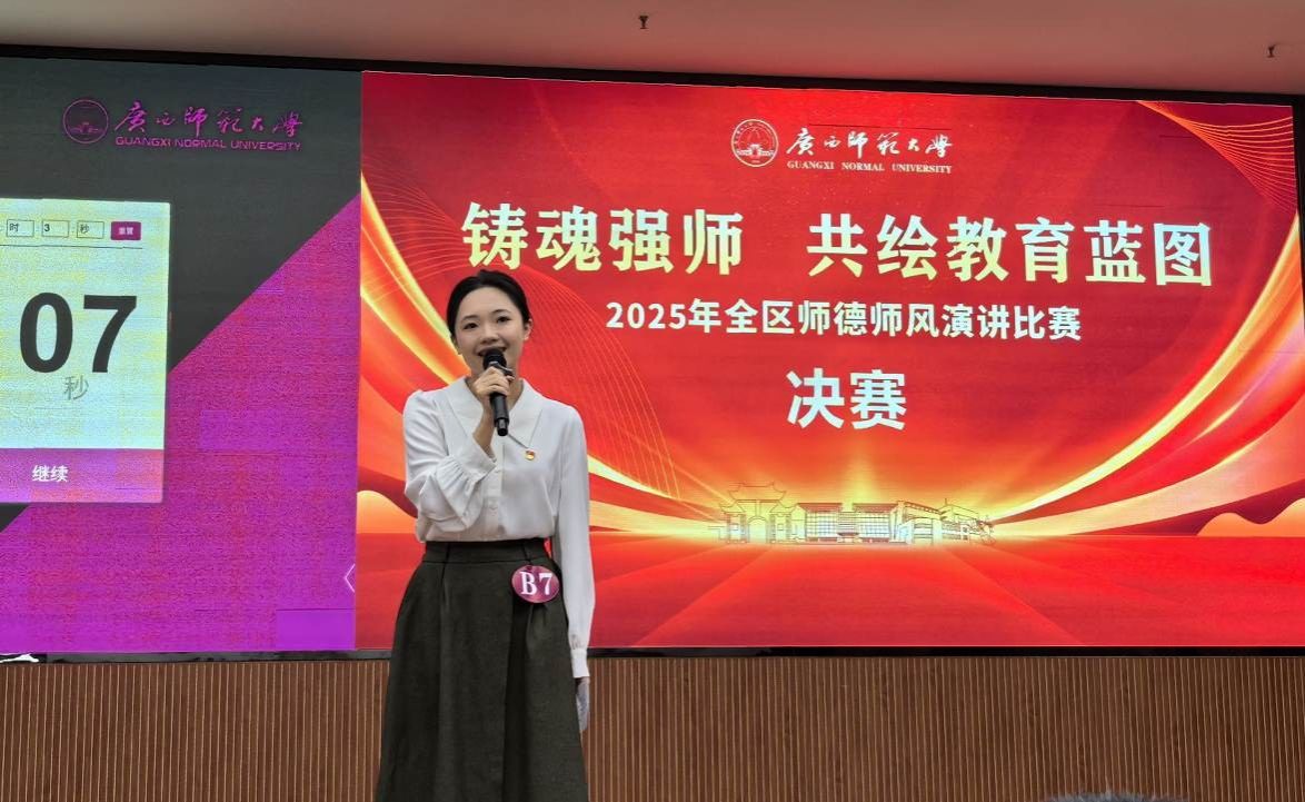 近日,自治区教育厅公布了2025年全区师德师风演讲比赛获奖名单,华体会平台(中国)有3名选手获奖,其中马克思主义学院劳倩雯和外国语学院刘静怡荣获一等奖、初等教育学院林伊荣获三等奖。一等奖获奖率在参赛的29所高校中排名第一。