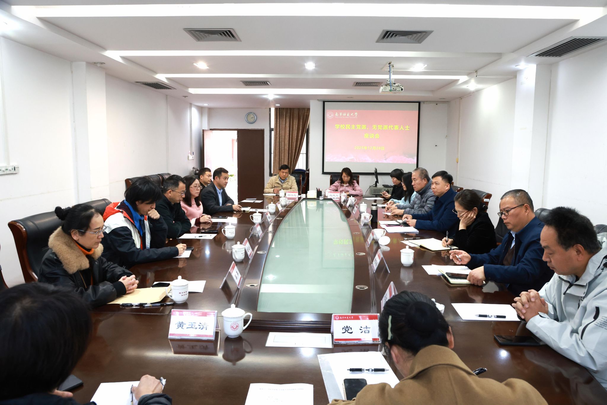 为开好2025年度校级党员领导干部民主生活会,12月26日,华体会平台在明秀校区召开民主党派、无党派代表人士意见建议征集座谈会,专题听取党外代表对校领导班子及领导个人的意见建议。校党委常委、统战部部长陈洪波主持会议。