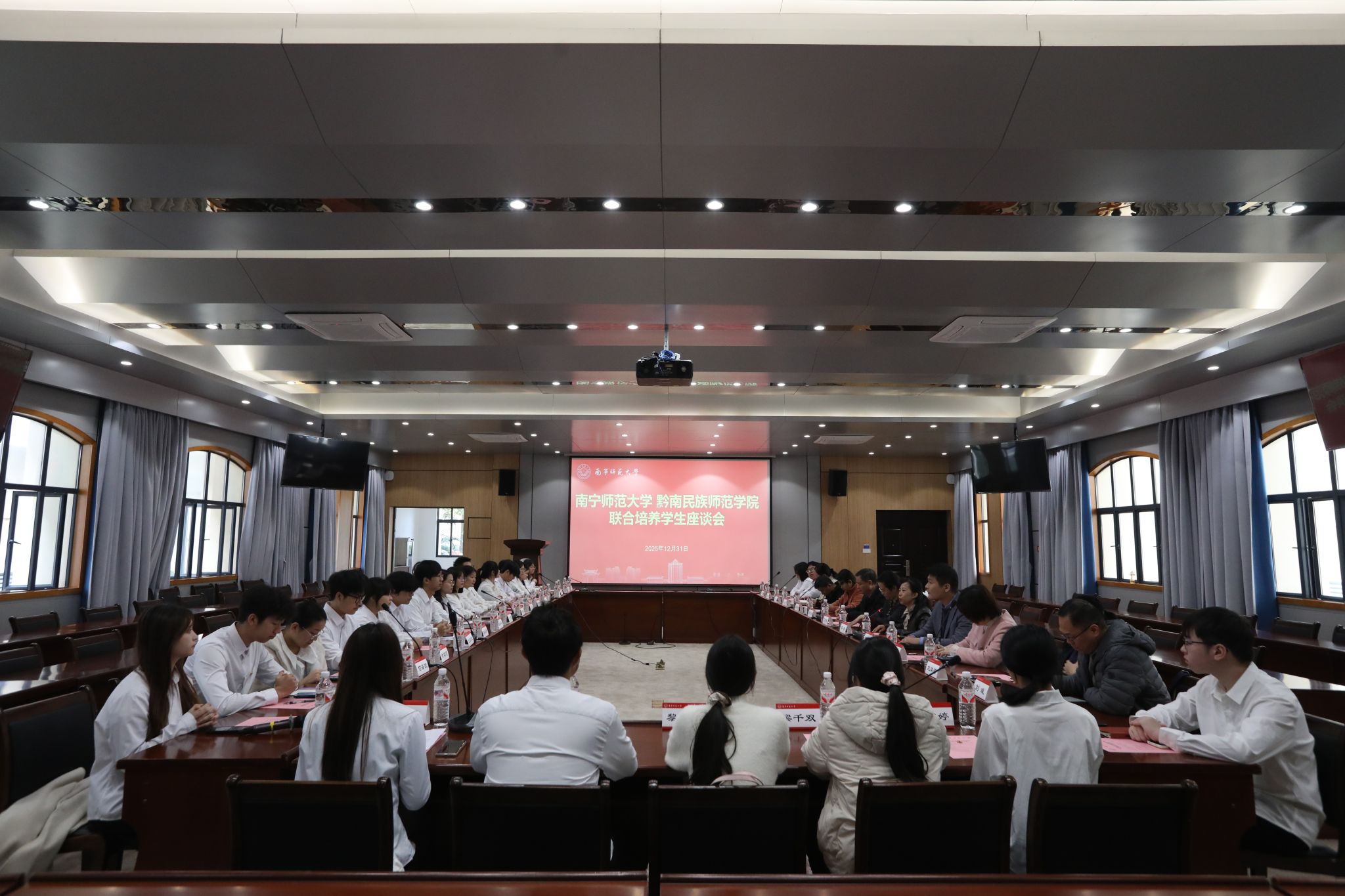 为落实师范教育协同提质计划,总结交换学习成果,凝聚校际育人共识,12月31日,华体会平台(中国)在武鸣校区顺利举行华体会平台 黔南民族师范学院联合培养学生座谈会。国内合作处、校团委、学生工作部(处)、教务处等部门负责人,相关学院党委副书记及学生代表参会。