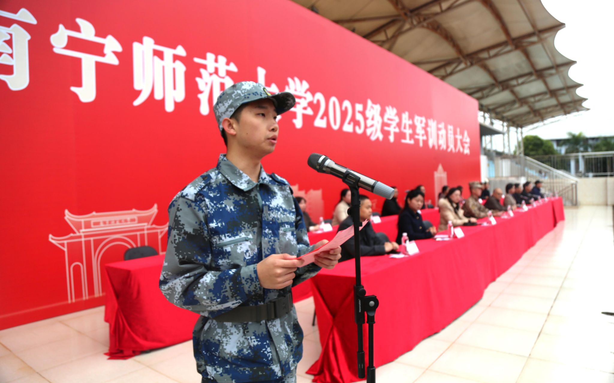 华体会平台(中国)2025级军训动员大会武鸣校区现场