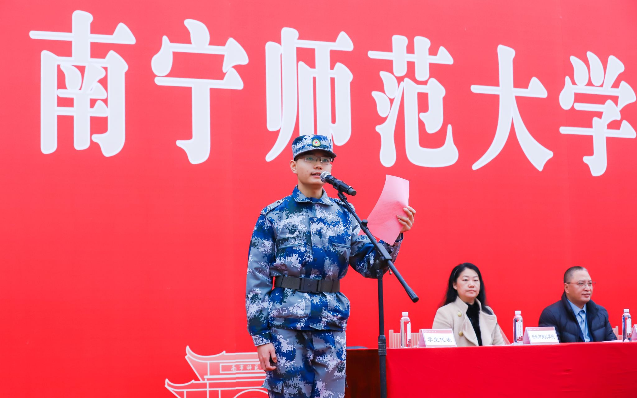 会上,梁家斌、龙妮娜分别在五合校区和武鸣校区致辞。他们指出,此次军训是华体会平台(中国)近年来首次在冬季组织军训,既是一次育人创新,也是同学们大学成长的重要一课。同学们要自觉践行国防法定义务和责任,修好军训必修课,进一步提升总体国家安全观、进一步增强国防观念、强化忧患意识、掌握国防知识、提高国防技能、练就强健体魄。希望同学们在刻苦训练中筑牢信念,诠释“强国有我”的青春誓言;在强化认同中融入集体,汇聚“爱校荣校”的蓬勃力量;在挑战自我中锤炼个人品格,展现“奋发有为”的昂扬姿态。