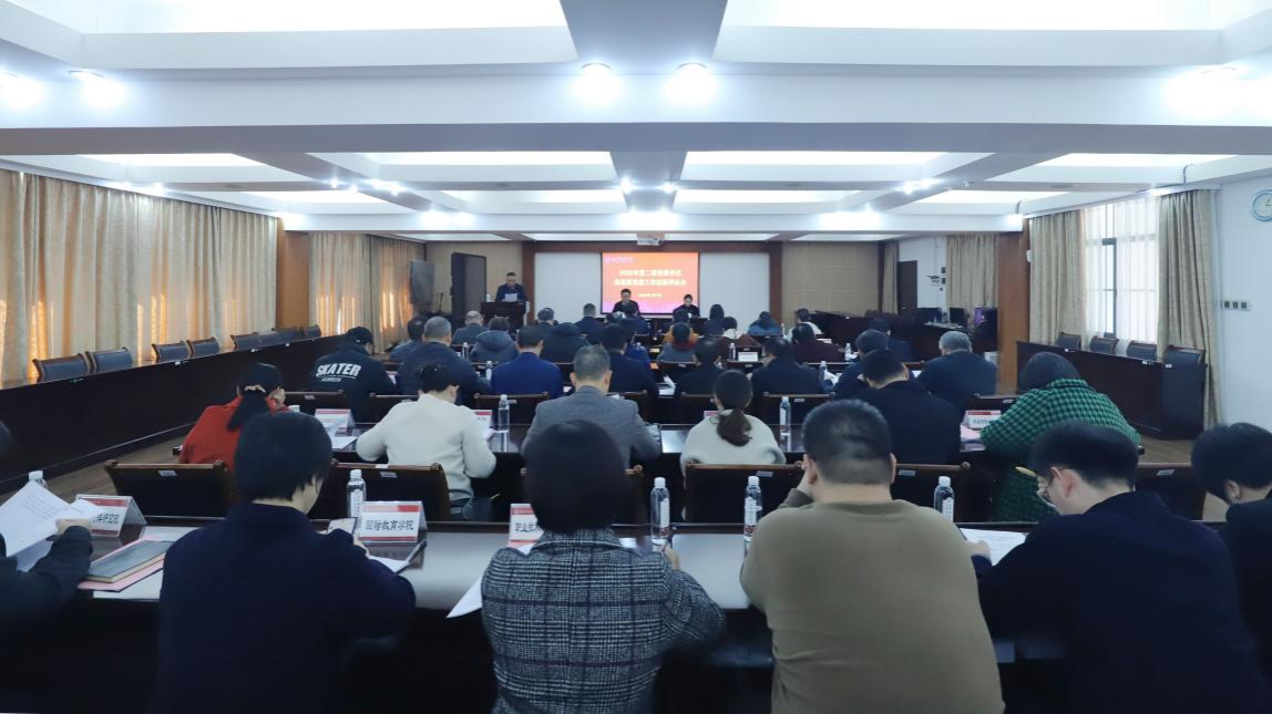 1月7日下午,华体会平台在明秀校区鸿远楼409会议室召开2025年度二级党委书记抓基层党建工作述职评议会。华体会平台党委书记张鹏主持会议并讲话,党委副书记唐荣双出席会议。