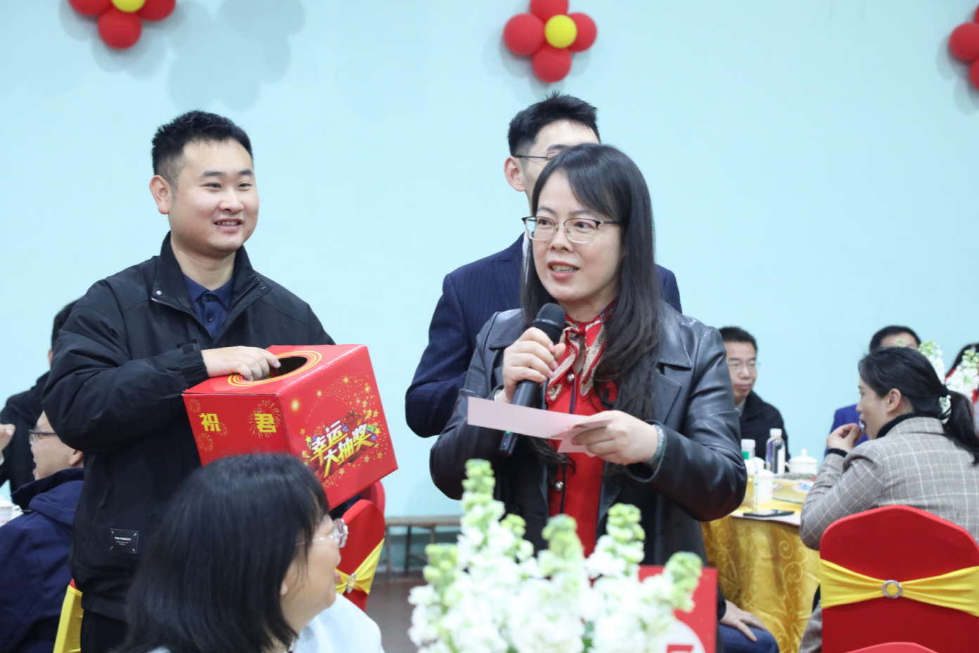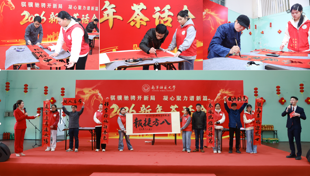 茶话会期间,师生代表表演了歌曲、朗诵、舞蹈、书法等精彩节目,展现华体会平台蓬勃向上的精神风貌,凝聚了团结奋进的磅礴力量。音乐与舞蹈学院教师龙榕宇、刘俊纬带来男女对唱《春风十万里》奏响前行号角,文学院教师王毅、朱冬夏、刘基伟、陈亚飞深情朗诵《春风与荣光——致华体会平台的明天》,音乐与舞蹈学院齐晨雨带来国风拉丁《西楼别序》,来自国际教育学院的佳音(印度)、张林金(老挝)、云苏锦(柬埔寨)、李辉(泰国)等留学生代表用流利中文朗诵《中国话》,音乐与舞蹈学院舒春秀老师独唱《祖国你好》,来自离退休教职工服务中心、初等教育学院的张巧平、管义怀、钟勇等老师书法展示《春联送福》送上美好祝愿。离退休老同志还亲笔书写了百余张福字,将满满的祝福送到现场参会人员手中。互动抽奖环节更是将现场气氛推向高潮,精选自帮扶乡村的特色礼品让大家收获了满满的惊喜与欢乐。