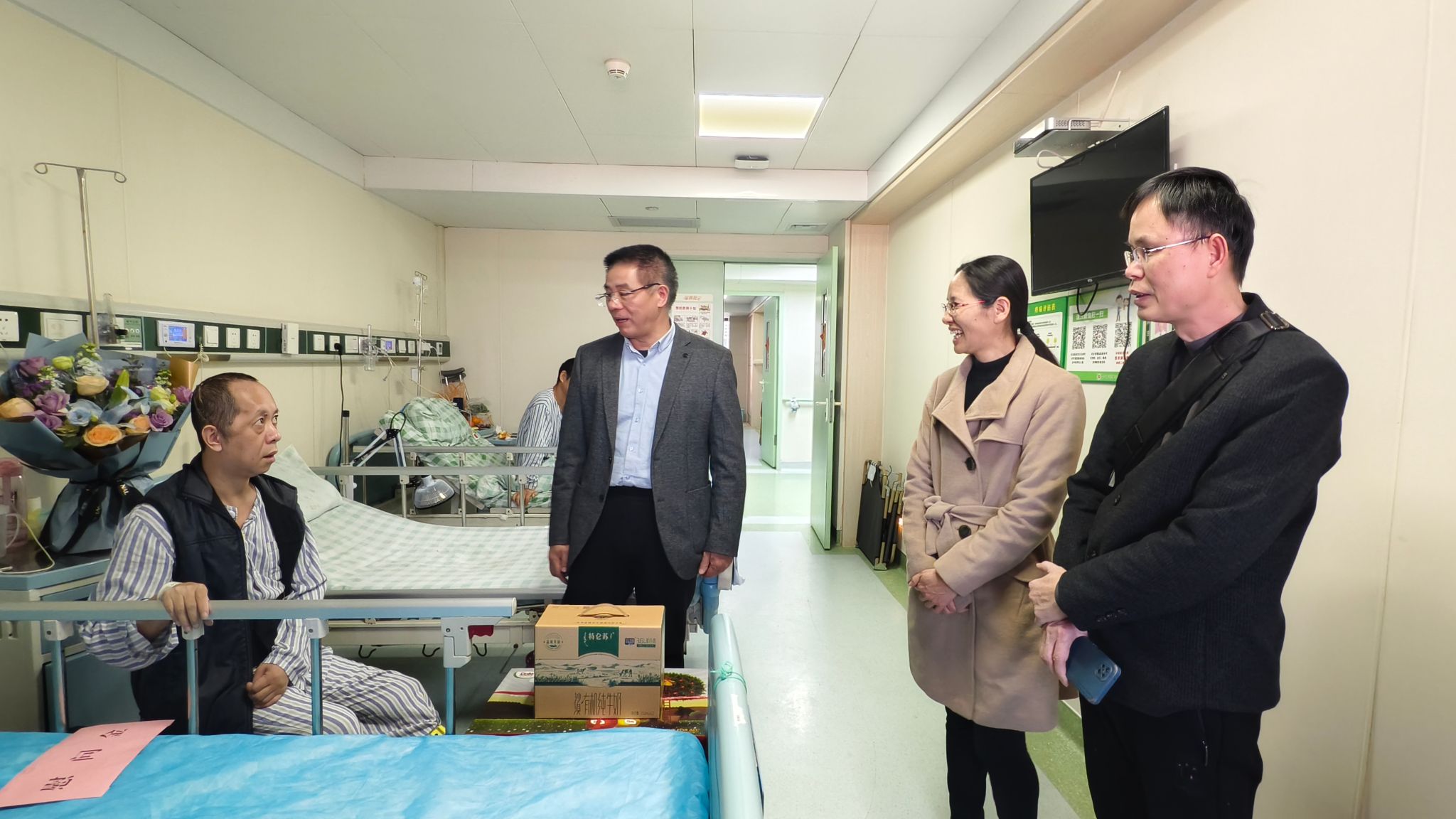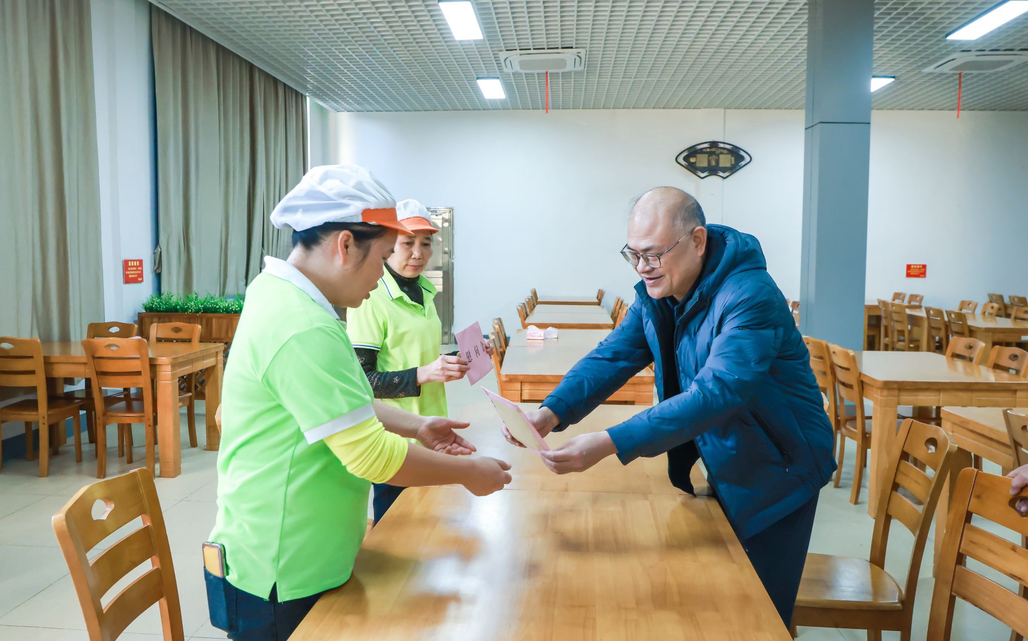 近日,华体会平台工会开展2026年春节“送温暖”慰问活动,华体会平台副校长、工会主席梁家斌深入食堂工作一线,看望后勤基建处膳食科2名困难教职工代表,工会常务副主席到医院看望住院治疗的困难教职工代表,送去慰问金及新春祝福,切实将华体会平台的关怀与工会组织的温暖送到困难教职工身边。