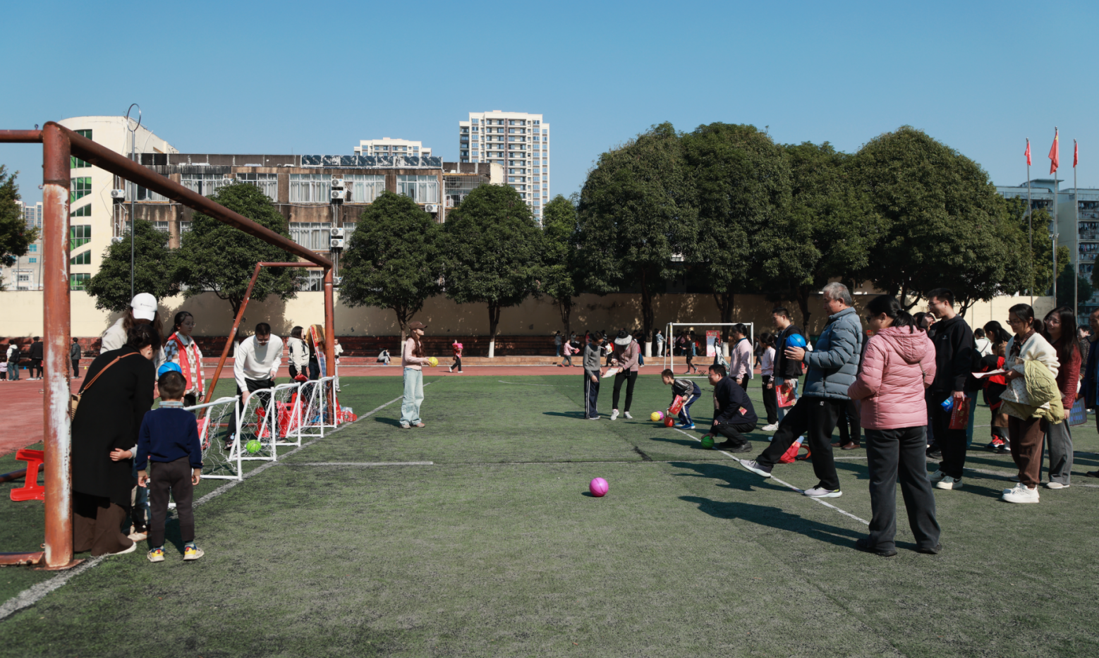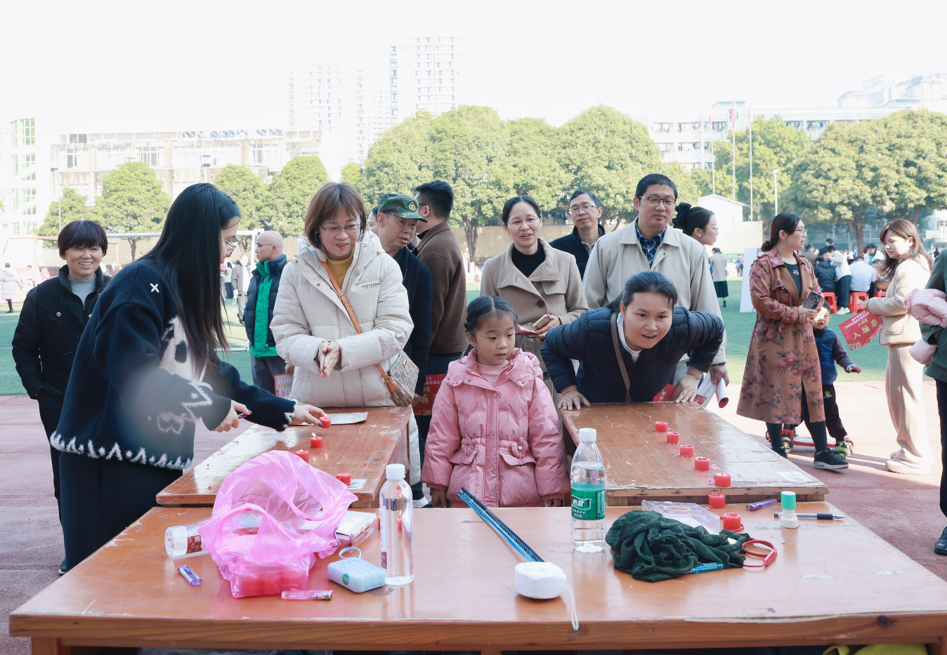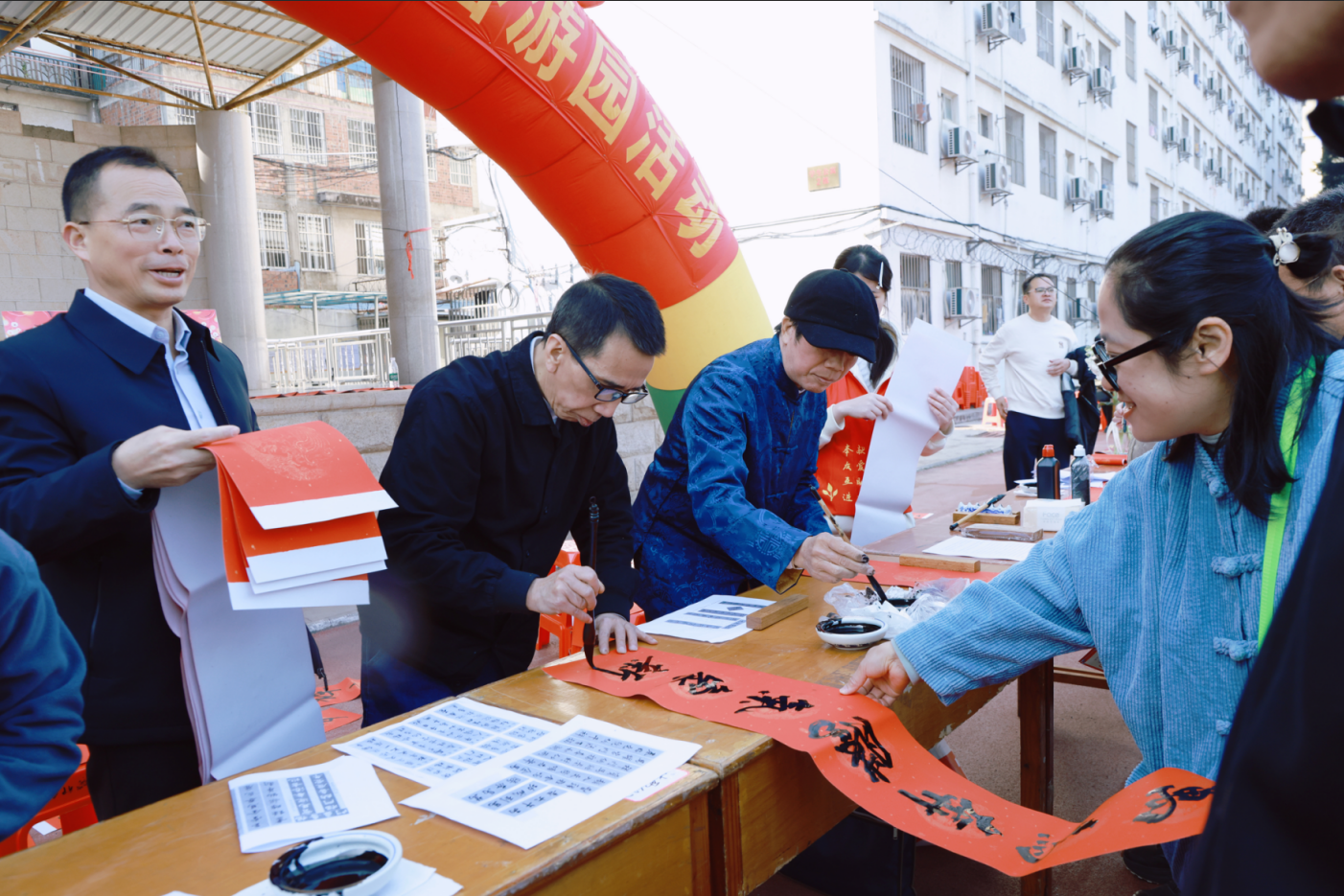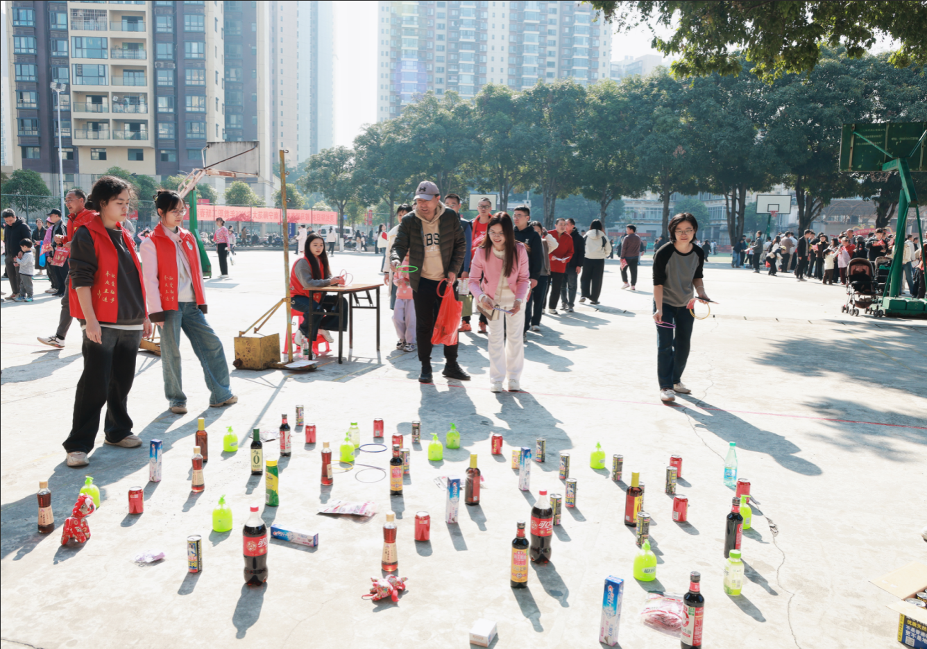 活动共设置了20项趣味盎然的游园项目,包括“开门接福”“国脚显威”“套中有礼”“鸡鸭到家”“乐猜灯谜”“迎春接福”等。教职工凭入场券自由参与,每完成一个项目即可获得相应印花,凭累计印花兑换精美奖品。现场欢声笑语不断,既有考验技巧的“趣味保龄球”“百发百中”,也有展现智慧的“才高八斗”“知识百宝箱”,更有年味浓郁的写春联、送福字活动。