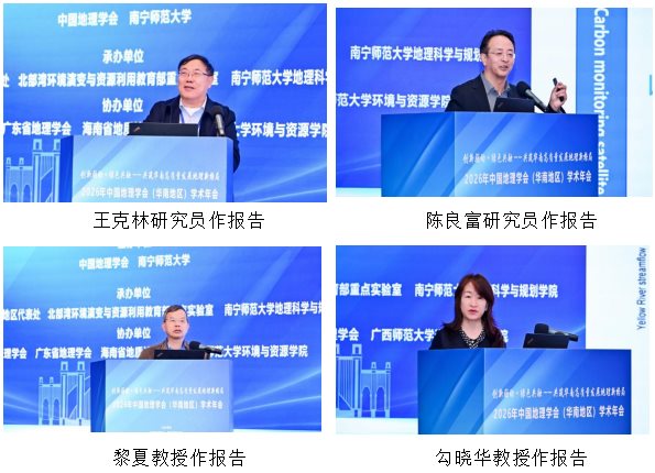 在特邀报告环节,中国科学院院士、中国科学院生态环境研究中心傅伯杰研究员,中国科学院院士、中国科学院地理科学与资源研究所樊杰研究员,中国科学院亚热带农业生态研究所王克林研究员,中国科学院空天信息创新研究院陈良富研究员,华东师范大学地理科学学院刘敏教授和黎夏教授,兰州大学勾晓华教授先后围绕“从地球系统科学到可持续发展”“‘两广’空间格局优化的实践与‘十五五’我国空间战略讨论”“南方喀斯特区域植被变绿与水碳耦合研究”“国内外碳卫星及面向碳盘点的我国下一代碳卫星设计”“中国土地利用变化对陆地碳循环间接效应”“树轮记录的西部气候、环境变化研究”“地理学的综合特征:环境地理学的挑战与展望”等主题作学术报告。副校长卢远教授介绍了华体会平台(中国)地理学科的发展情况与未来规划。学术报告先后由刘云刚教授,地理科学与规划学院副院长赵银军教授和广州大学地理科学与遥感学院院长吴志峰教授主持。