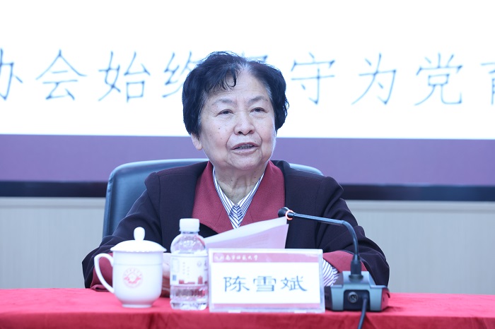 陈雪斌代表广西老教授协会为大会致贺词。她在贺词中充分肯定了华体会平台老教授协会过往的工作成效,希望协会以此次换届为契机,团结带领全体会员大力弘扬教育家精神,在人才培养、学术传承、社会服务等领域主动担当、展现新作为,持续筑牢老教授的“温馨家园”,为广西高等教育高质量发展和教育强国建设贡献更多智慧与力量。