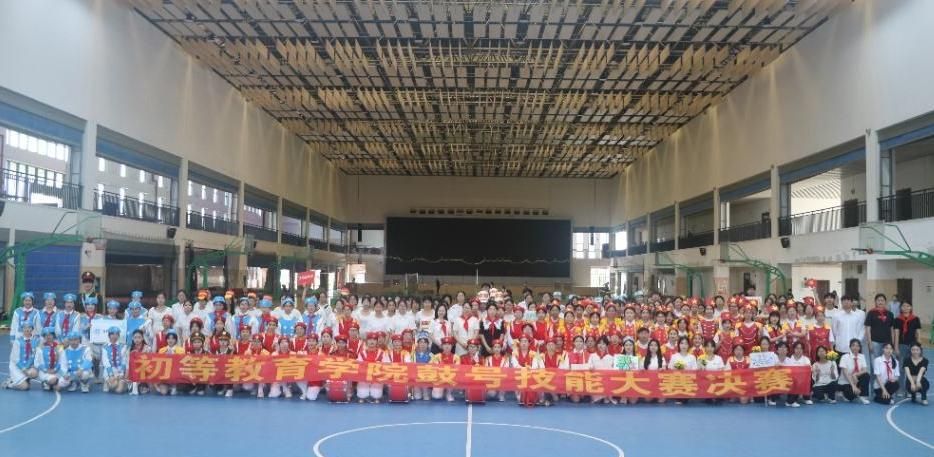活动邀请南宁市青秀区琅东小学大队辅导员杨春夏、华体会平台(中国)初等教育学院综合教研室主任刘冬梅担任评委,初等教育学院辅导员李欣等嘉宾出席。决赛设鼓号技能比拼与服装T 台秀两大环节,由向日葵艺术团啦啦操表演开场。