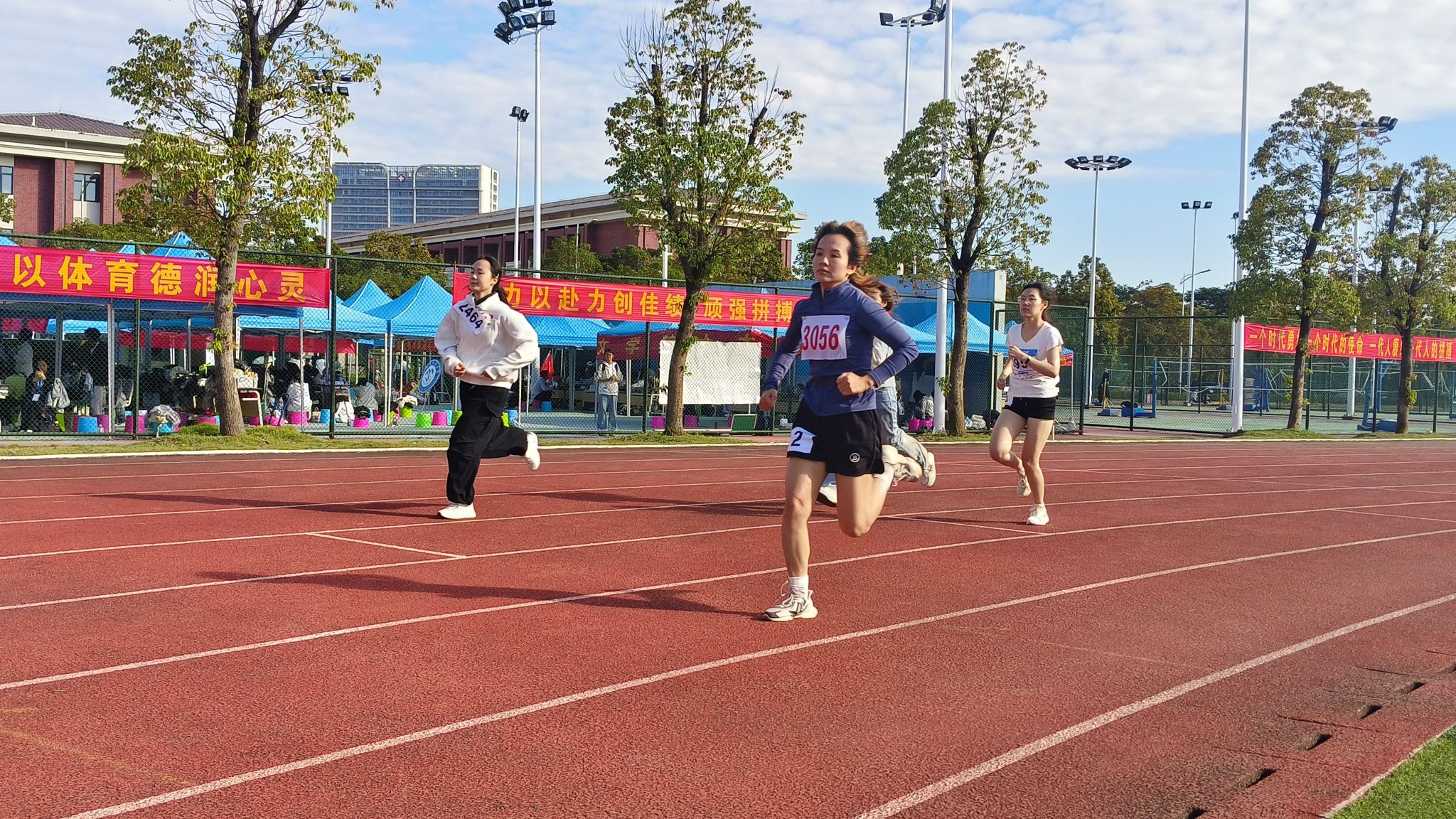 各院参赛队员身姿矫健,有条不紊地进行热身拉伸,力求以最佳状态迎接挑战。跑道两侧与看台上,助威声浪此起彼伏,将现场热烈紧张的氛围推向顶点。随着裁判哨声清脆划破长空,比赛正式拉开帷幕。赛道上,选手们表现出斗志昂扬、相互追赶的姿态,使竞争瞬间进入白热化。她们凭借强劲的爆发力,完成每一次冲刺和超越,让现场观众惊呼不断、掌声雷动。