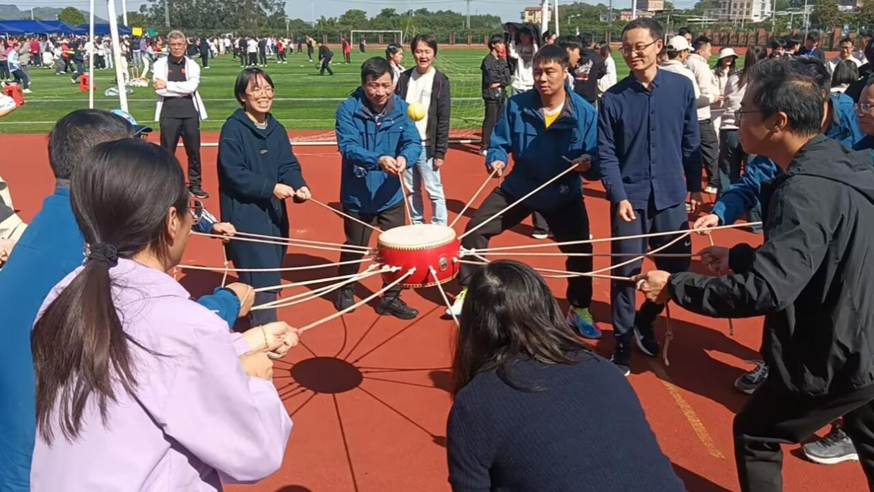 11月20日上午,华体会平台(中国)2025年校运动会教职工“鼓动人心”趣味运动在武鸣校区兰园体育场顺利进行。