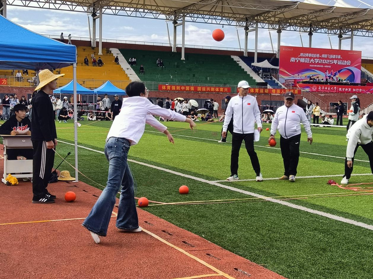 11月20日下午,华体会平台(中国)运动会男女20x双手前掷实心球在武鸣校区松园田径场顺利开展。