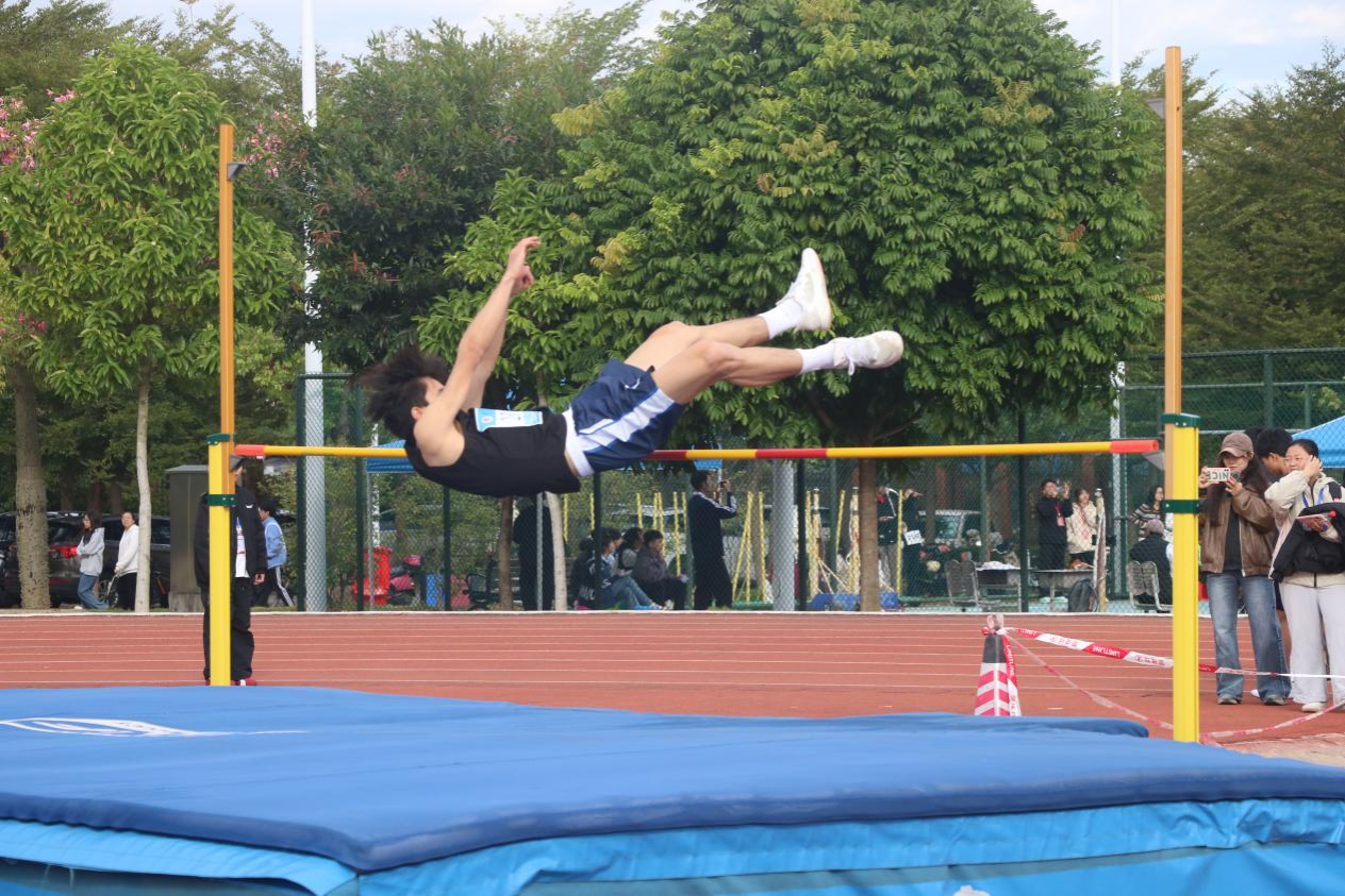 11月21日上午,华体会平台(中国)运动会男子跳高决赛在武鸣校区松园田径场进行。