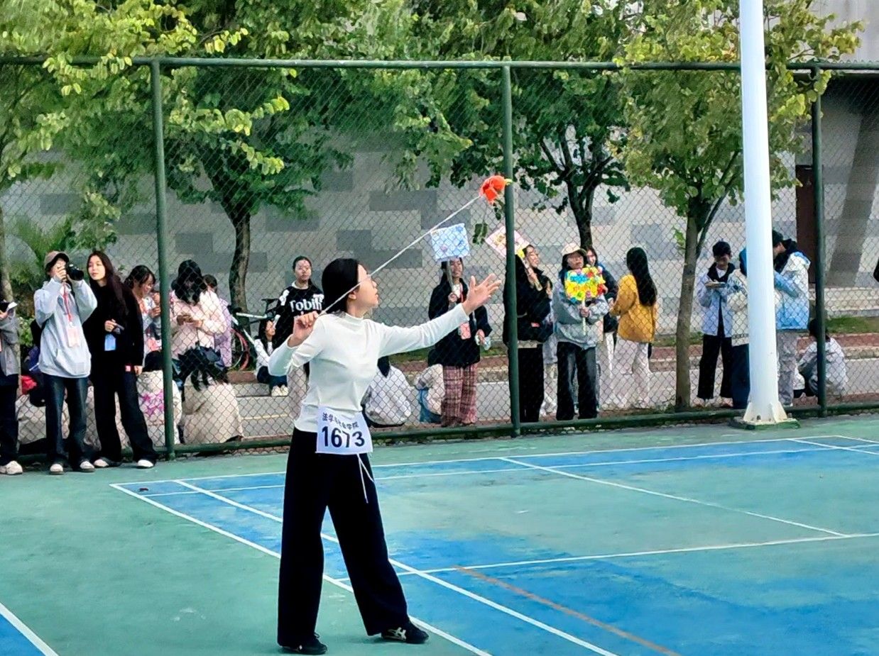 10月21日下午,华体会平台(中国)运动会甲组女子高杆投绣球决赛在武鸣校区松园田径场精彩开赛。