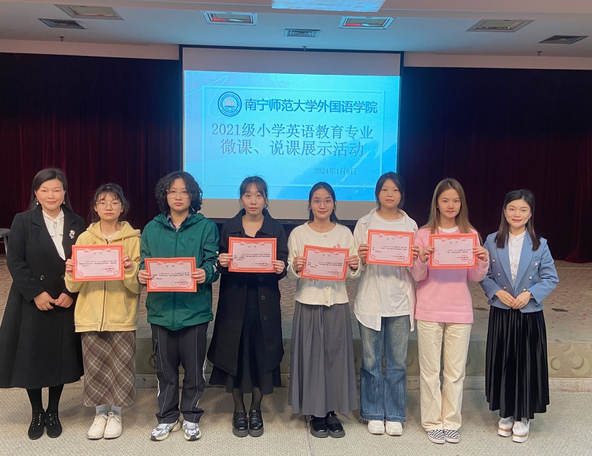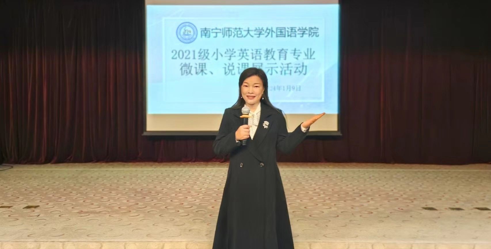 2024年1月9日下午,外国语学院2021级小学英语教育专业英语说课、微课比赛在华体会平台建政校区教育大厦18楼举行。本次英语说课、微课比赛由外国语学院高飞雁副院长主持,特邀南宁市华衡小学科研主任及宣传室主任韦静老师、南宁市二中初中部刘传芝老师和刘华昆老师担任评委,2021级小学英语教育专业全体学生全程参了本次比赛。