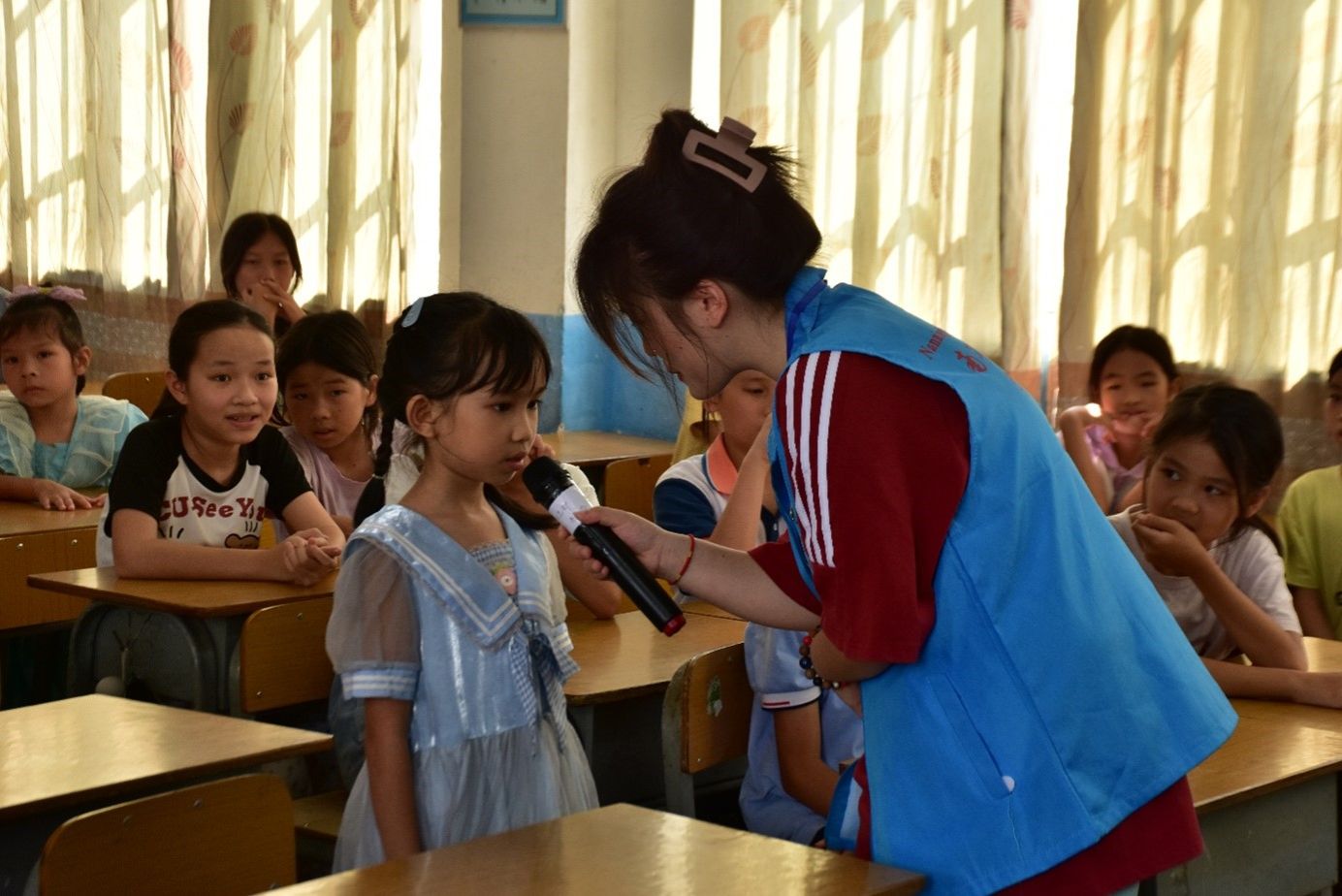 “翔鹭”智汇民族实践团队在到达合理小学后,在当地招募了44名儿童参与到特色教学活动中。为了拉近孩子们与志愿者们之间的距离,让孩子们在游戏中熟悉彼此,志愿者们精心设计了丰富多彩的“破冰”游戏。“破冰”活动包括“击鼓传花”、“你画我猜”和“爱的抱抱”等游戏,整个活动过程大家积极参与其中,氛围其乐融融,充分激发了参与者们的热情,拉近了孩子们彼此间的距离,增加了孩子们与志愿者之间的了解。在“翔鹭”智汇民族实践团队的共同努力下,“破冰”活动圆满结束。志愿者们还为孩子们颁发了奖品,孩子们高兴得喜笑颜开。