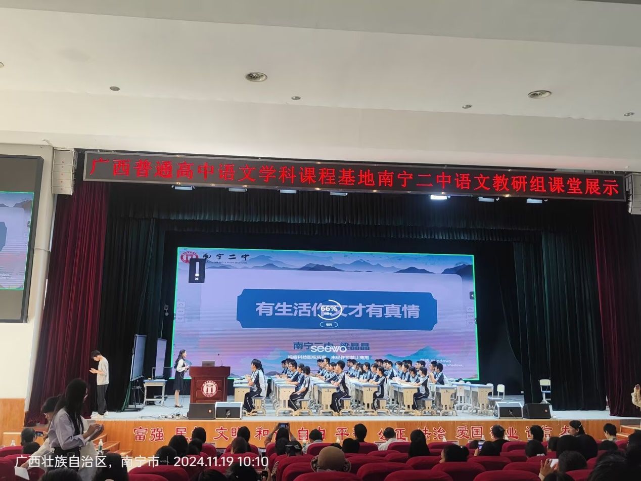 随后,师生共同观摩了由南宁市第二中学梁晶晶老师执教的《有生活作文才有真情》和覃莹莹老师执教的《有思考作文才有思想》两节课。梁晶晶老师从同学们的写作困惑出发,一步步引导同学们感悟生活,写出带有真情实感的文章。覃莹莹老师则从“沉香与木炭”材料出发,启发学生理解生活中的“沉香”和“木炭”,并引发学生对愿意做“沉香”还是愿意做“木炭”的思考,从而面对新的作文题目可以很好地建构自己的行文思路。